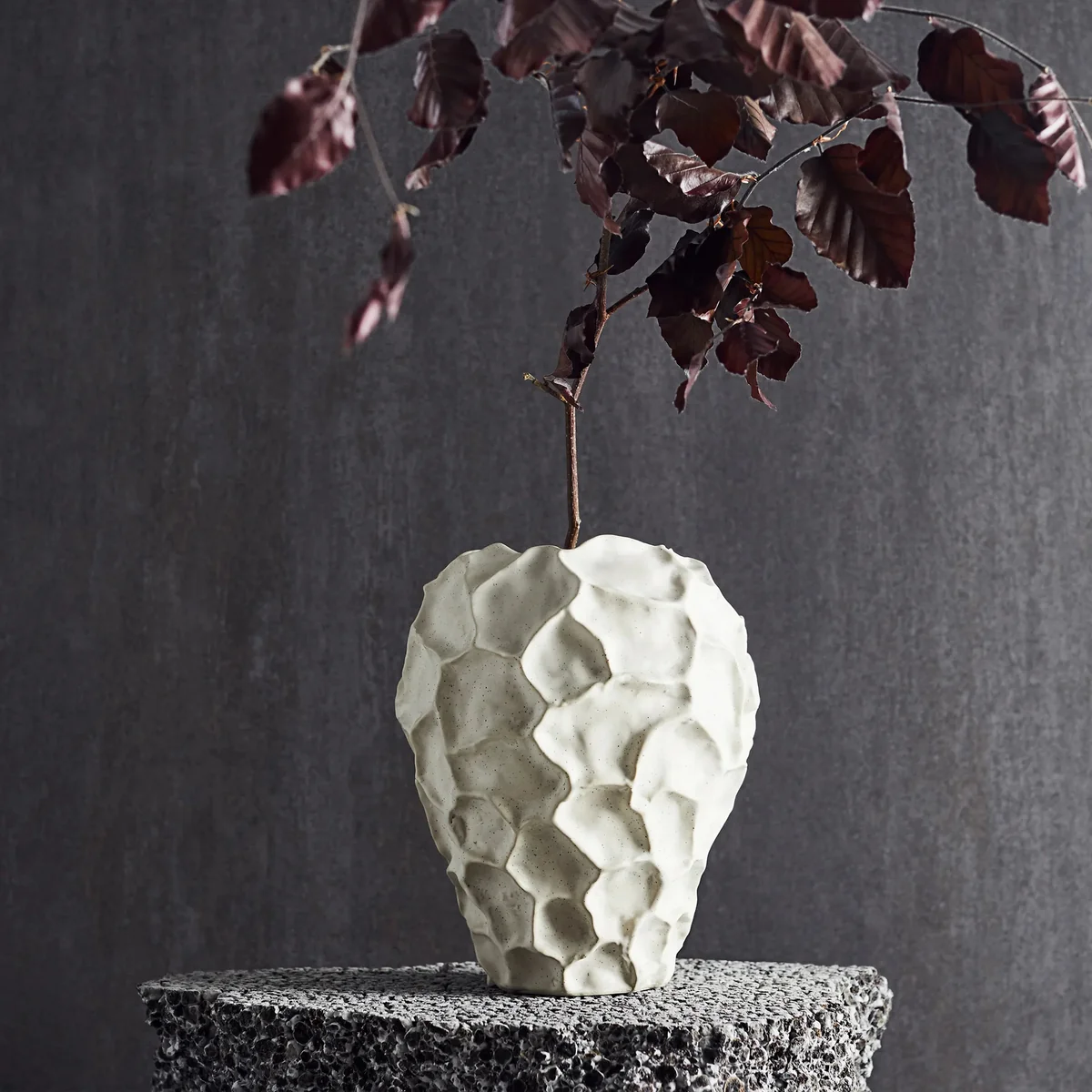 De Soil vaas van de Deense fabrikant Muubs is geïnspireerd door de patronen en texturen van de natuur. De buitengewone vaas is gemaakt van steengoed en kan ideaal worden gebruikt voor verse boeketten, droogbloemen of zelfs op zichzelf. De Soil vaas kan perfect gecombineerd worden met houten en ijzeren meubelen. Het is behandeld met een reactief glazuur, dat elk voorwerp een uniek karakter geeft.