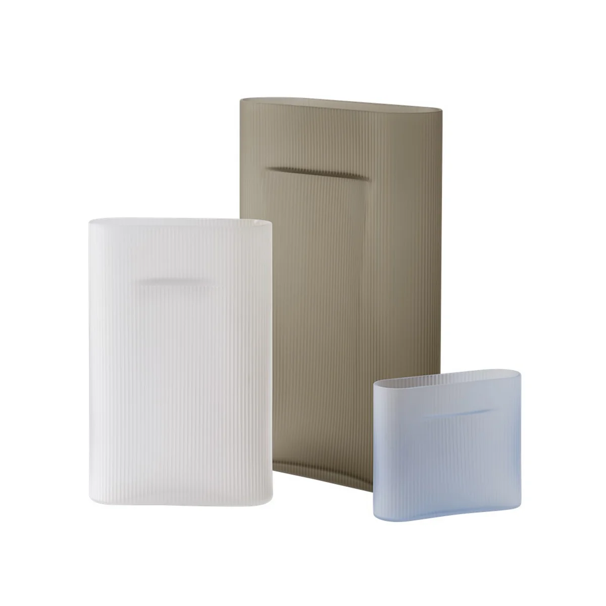 De Ridge vazen zijn gemaakt van glas en zijn verkrijgbaar in verschillende designs en kleuren. Ze zijn niet geschikt voor de vaatwasser en moeten met de hand worden schoongemaakt.