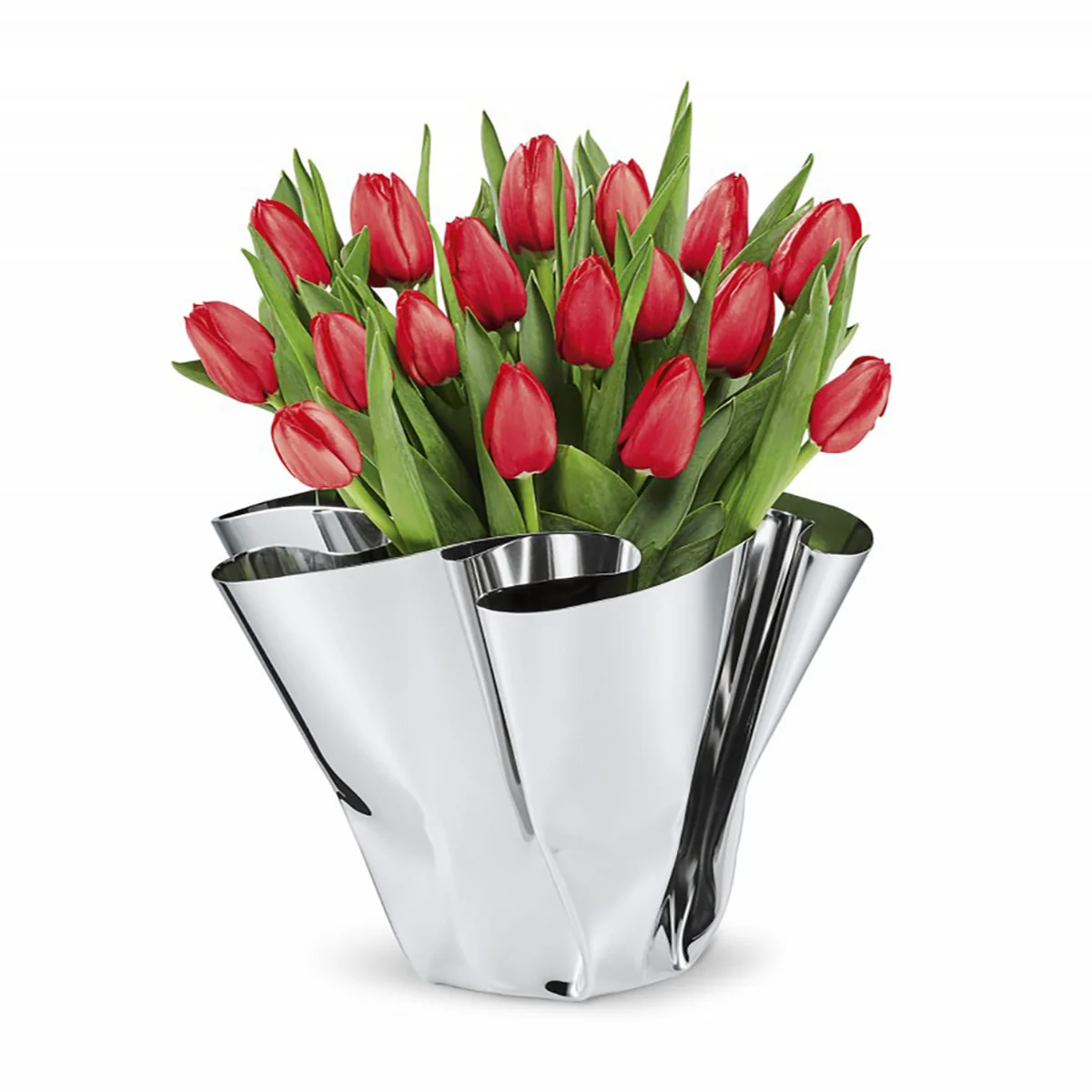 De Margeaux Vaas van Philippi is gemaakt van roestvrij staal en wordt gekenmerkt door zijn vegende vorm. Als een theatergordijn is het materiaal geplooid en ziet er dus bijzonder nobel uit.