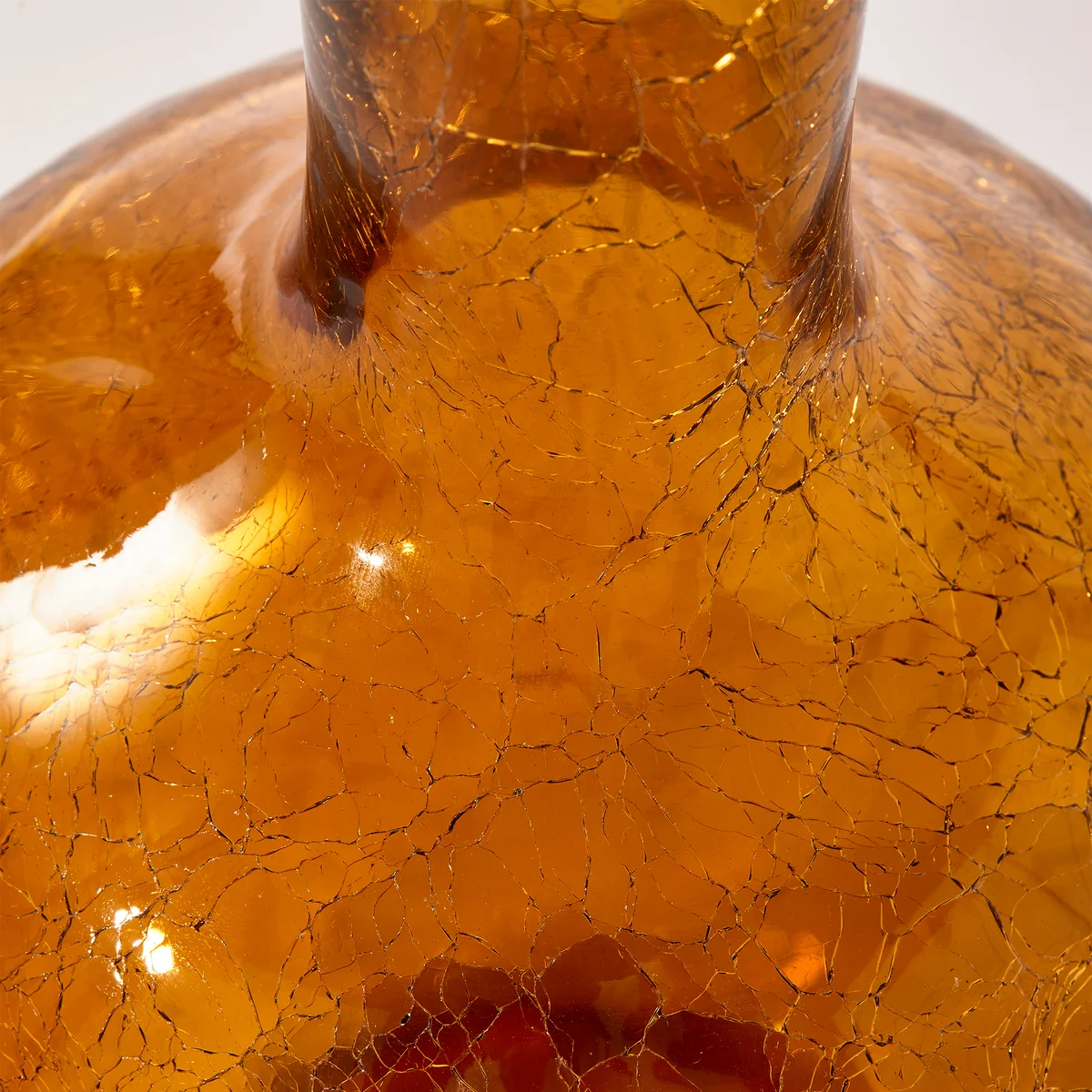 Het meest opvallende kenmerk van deze vaas is het craquelépatroon in het glas, dat de vaas een uniek karakter geeft. Het craqueléontwerp creëert een fascinerende textuur en een spel van licht en schaduw dat elke kamer verlevendigt en interessanter maakt.