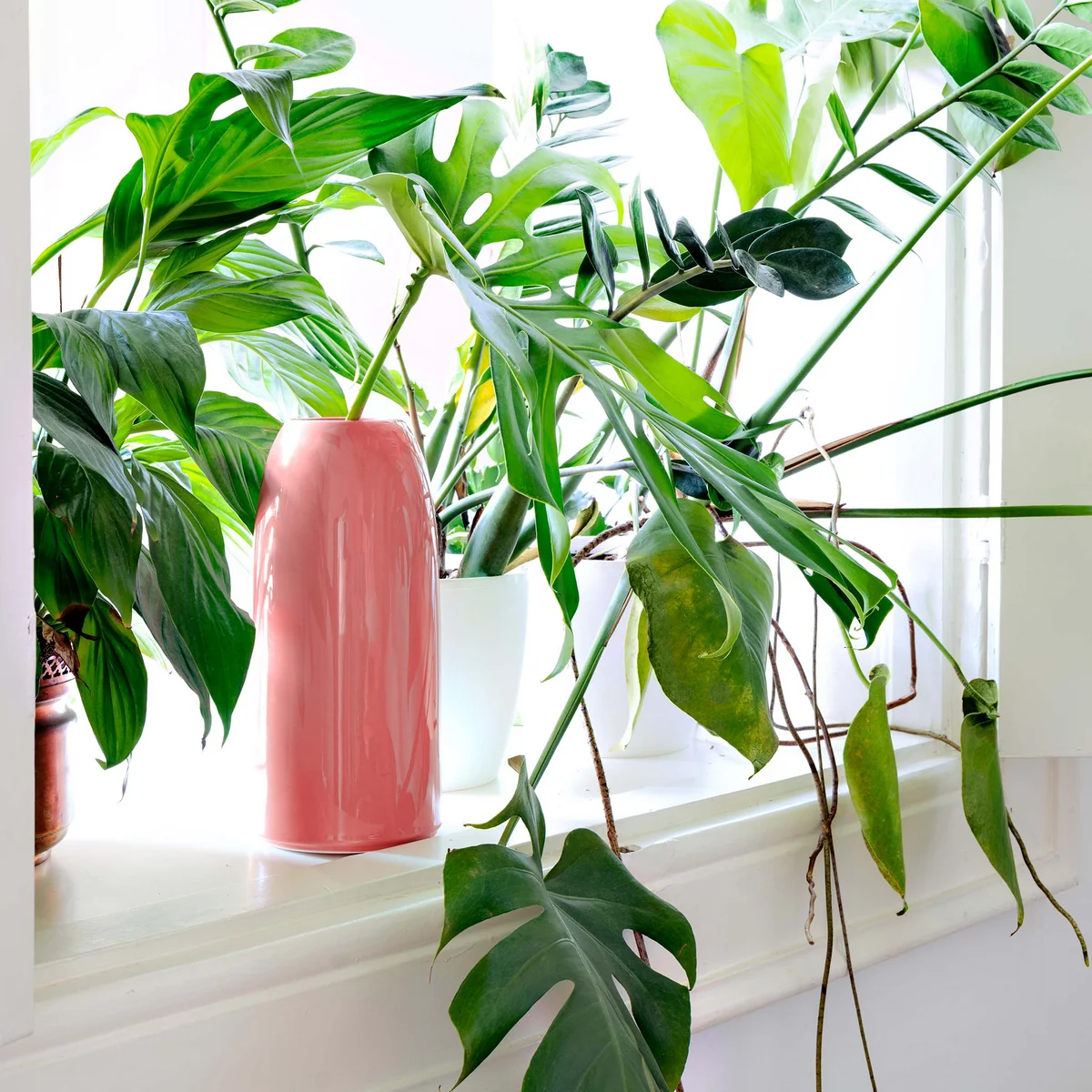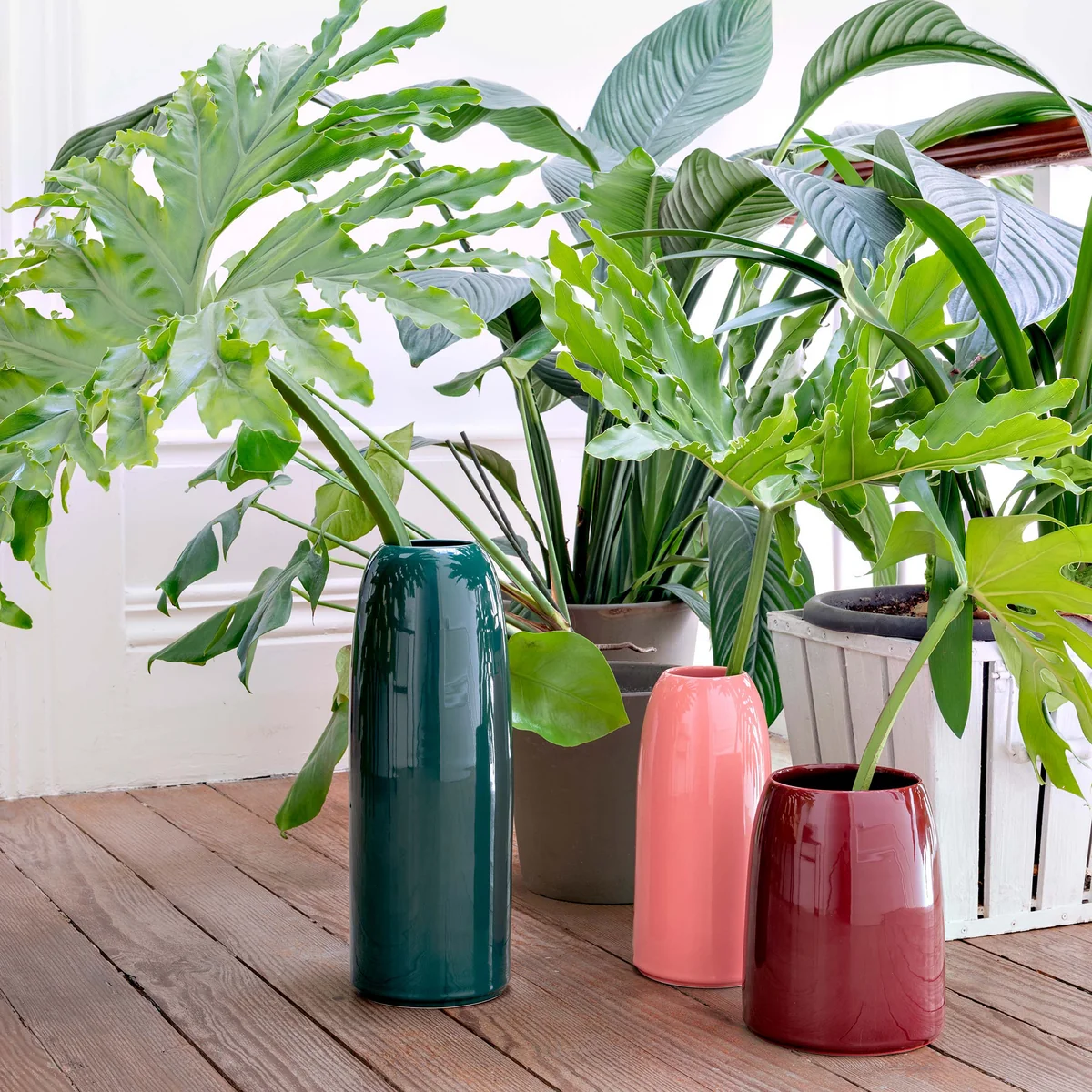 Het gladde oppervlak van de Carla vaas, de kleuren en vormen van de bloemen en planten zijn perfect geënsceneerd en worden blikvangers. De slanke vorm van de vaas is bijzonder geschikt voor bloemen met lange stelen en biedt voldoende ruimte voor diverse snijbloemen.
