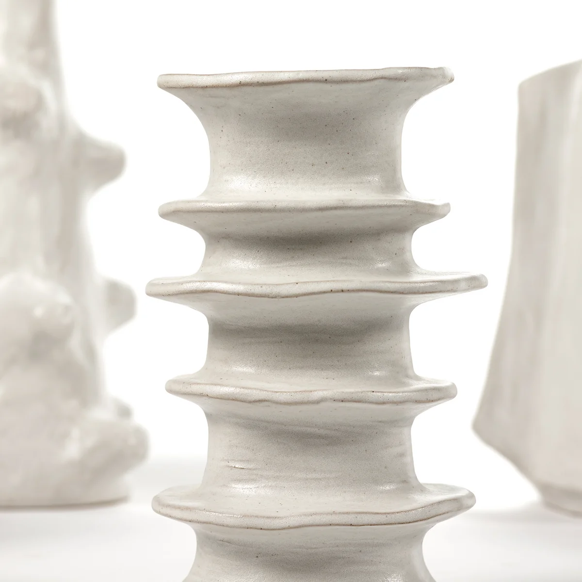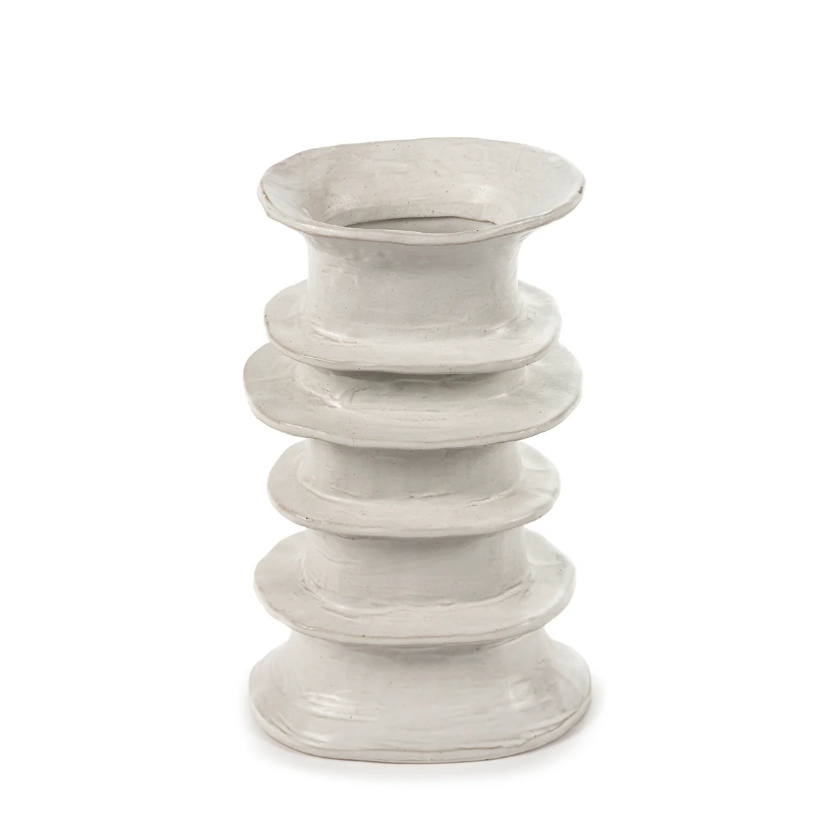 De Billy Serax vaas van combineert kunst en vakmanschap in een uniek ontwerp. Elke vaas is met de hand gemodelleerd en maakt indruk met zijn tijdloze, gebroken witte kleur en zachte, organische vormen. Dit harmonieuze samenspel geeft de vaas een rustgevende en stijlvolle uitstraling die perfect past in moderne en klassieke woonruimtes.