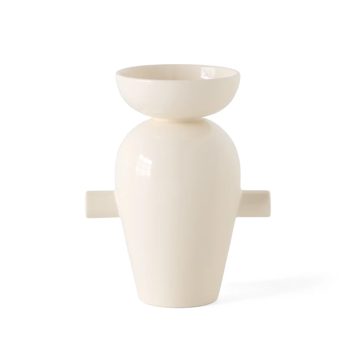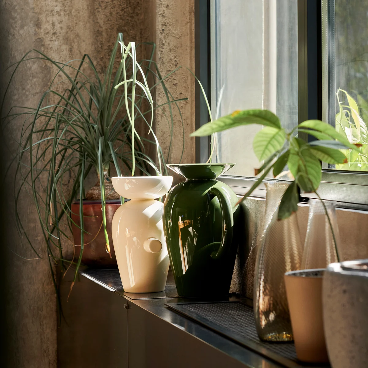 De Momento vaas van het Deense huis & Tradition heeft een sterke, speelse identiteit. De iconische vorm is versierd met sterke of eenvoudige kleuren, zodat hij zich prachtig aanpast aan de woonsfeer. Het slanke ontwerp kan afzonderlijk in focus worden geplaatst of gecombineerd worden met bloemstukken.