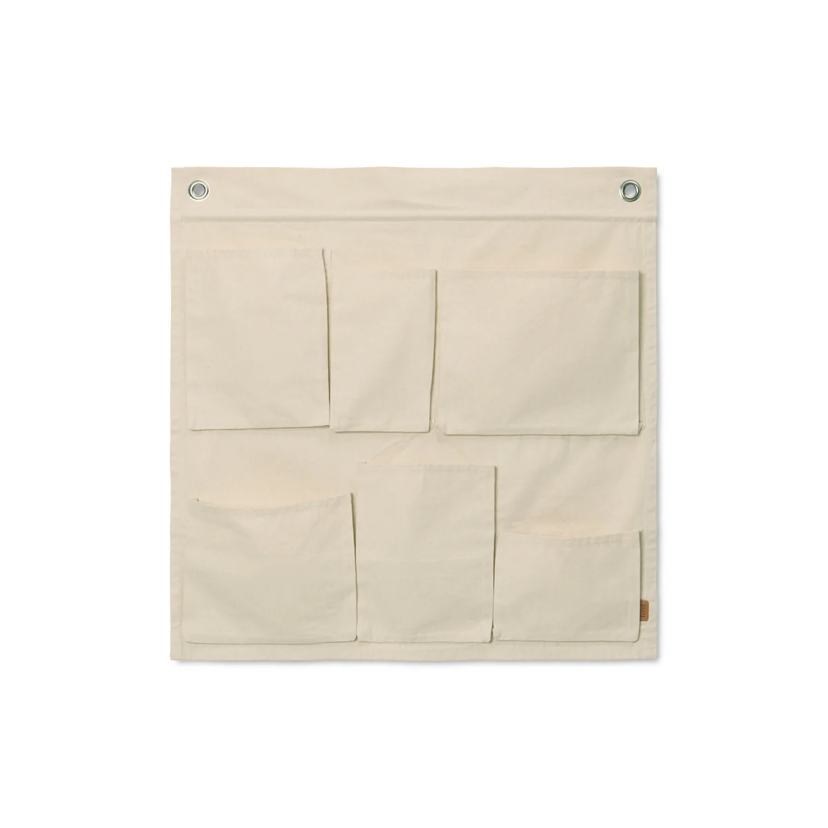 De Canvas wandorganizer van Ferm Living inspireert met zijn eenvoudige maar esthetische organisatietalent. De functionele opbergmogelijkheid is gemaakt van ongeverfd katoen. Canvas -katoen. De duurzame zakken in verschillende maten zijn ideaal voor het verbergen van boeken, knuffels en co. Een oogje per bovenhoek zorgt voor handige bevestiging aan een muur of deur. Was indien nodig op 30°C op het fijne programma.