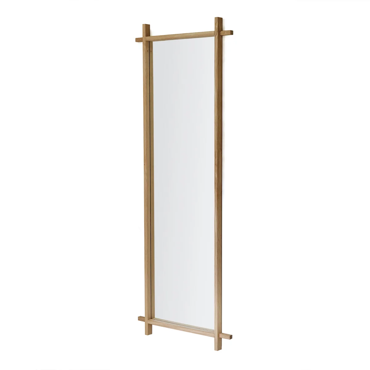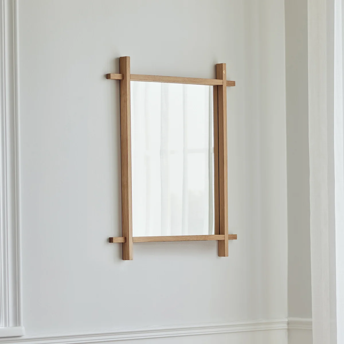 De Collect-serie wordt aangevuld met prachtig gevormde, eenvoudige spiegels in een klassiek Scandinavisch design. Met strakke lijnen en een elegant frame van FSC®-gecertificeerd eiken combineert de spiegel tijdloze esthetiek met functionele geschiktheid voor dagelijks gebruik. De warme houttinten geven de kamer een natuurlijke, uitnodigende sfeer. Tegelijkertijd benadrukken de nauwkeurig vervaardigde kruisverbindingen de hoge kwaliteit van het vakmanschap - een samenspel dat design en functie in perfecte balans laat zien.