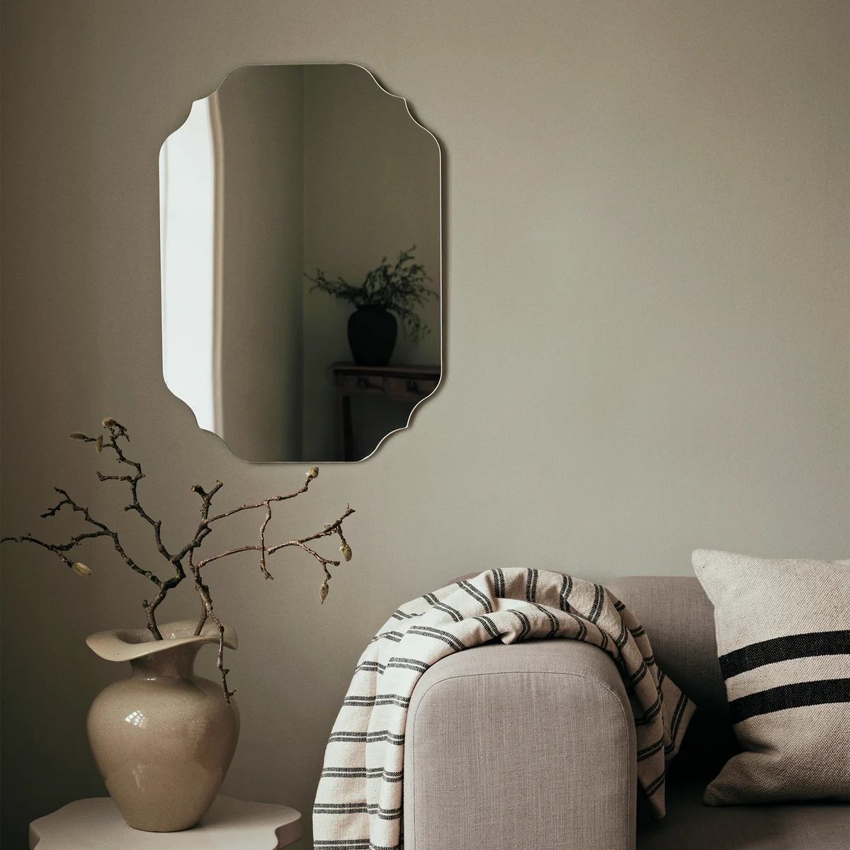 Dankzij het compacte formaat kan de spiegel flexibel worden geplaatst. Lulu spiegel flexibel worden geplaatst en ziet er zowel alleen als in combinatie met andere wandobjecten stijlvol en verfijnd uit. Een hoogwaardig detail voor iedereen die waarde hecht aan bewust leven en eenvoudige elegantie.