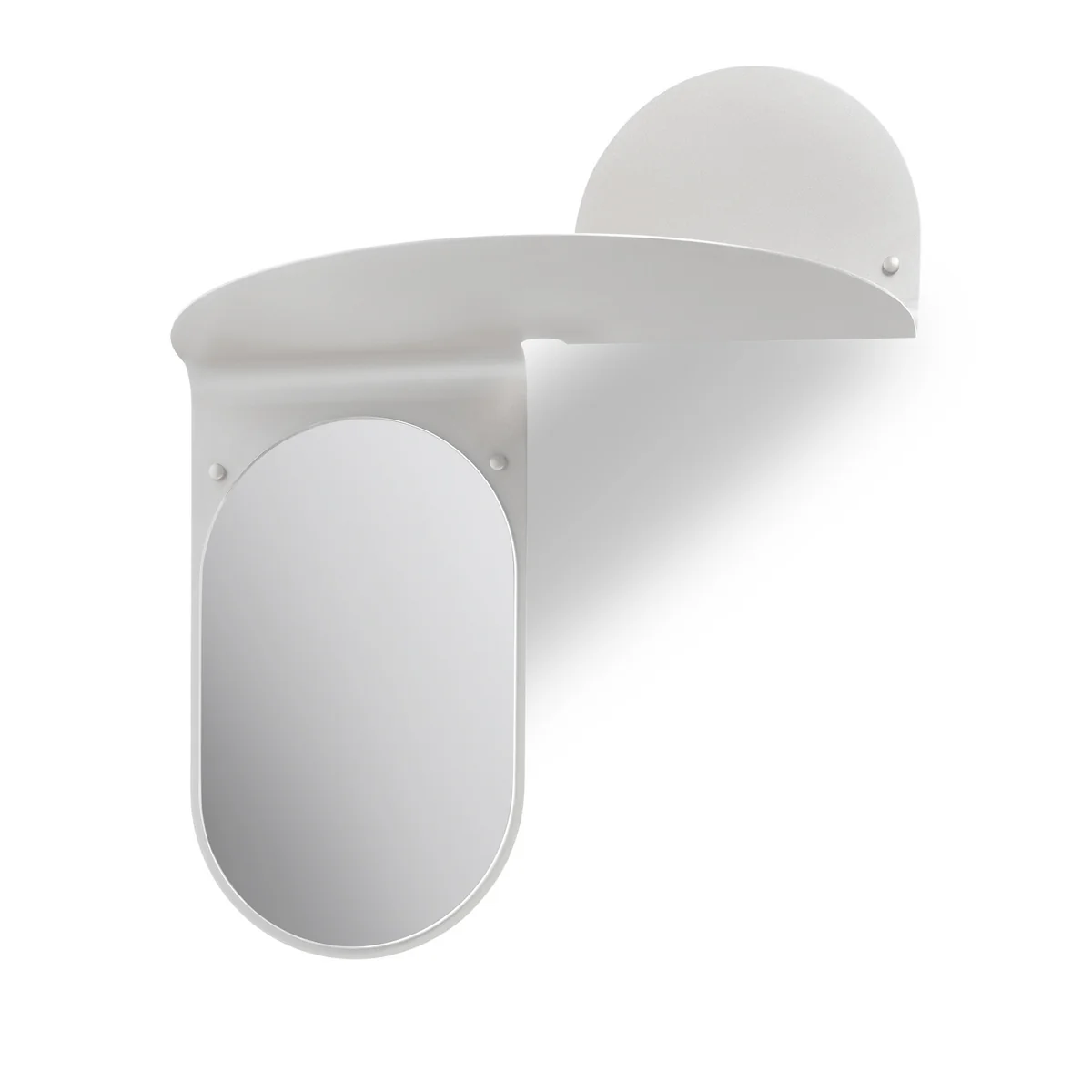 De Flip spiegel maakt indruk met zijn harmonieuze samenspel van vloeiende lijnen en heldere vormen. De gedeeltelijk gebogen vorm is gemaakt van gepoedercoat metaal en biedt niet alleen een stijlvol spiegeloppervlak, maar ook een geïntegreerde plank. Dankzij de veelzijdige uitlijnmogelijkheden kan de spiegel horizontaal of verticaal worden geplaatst, afhankelijk van je behoeften en persoonlijke stijl - perfect voor gangen, slaapkamers of badkamers.