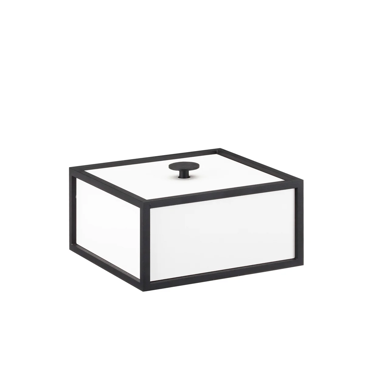 Combineer de Frame Box en met de kastmodules om een uniek beeldhouwwerk te creëren of gebruik de afzonderlijke dozen om kleine persoonlijke schatten in op te bergen. De individuele combinatiemogelijkheden zijn bijna eindeloos. De Frame De collectie combineert functionaliteit, kwaliteit en esthetiek en wordt in Denemarken met veel oog voor detail vervaardigd uit melamine, fineer en MDF.