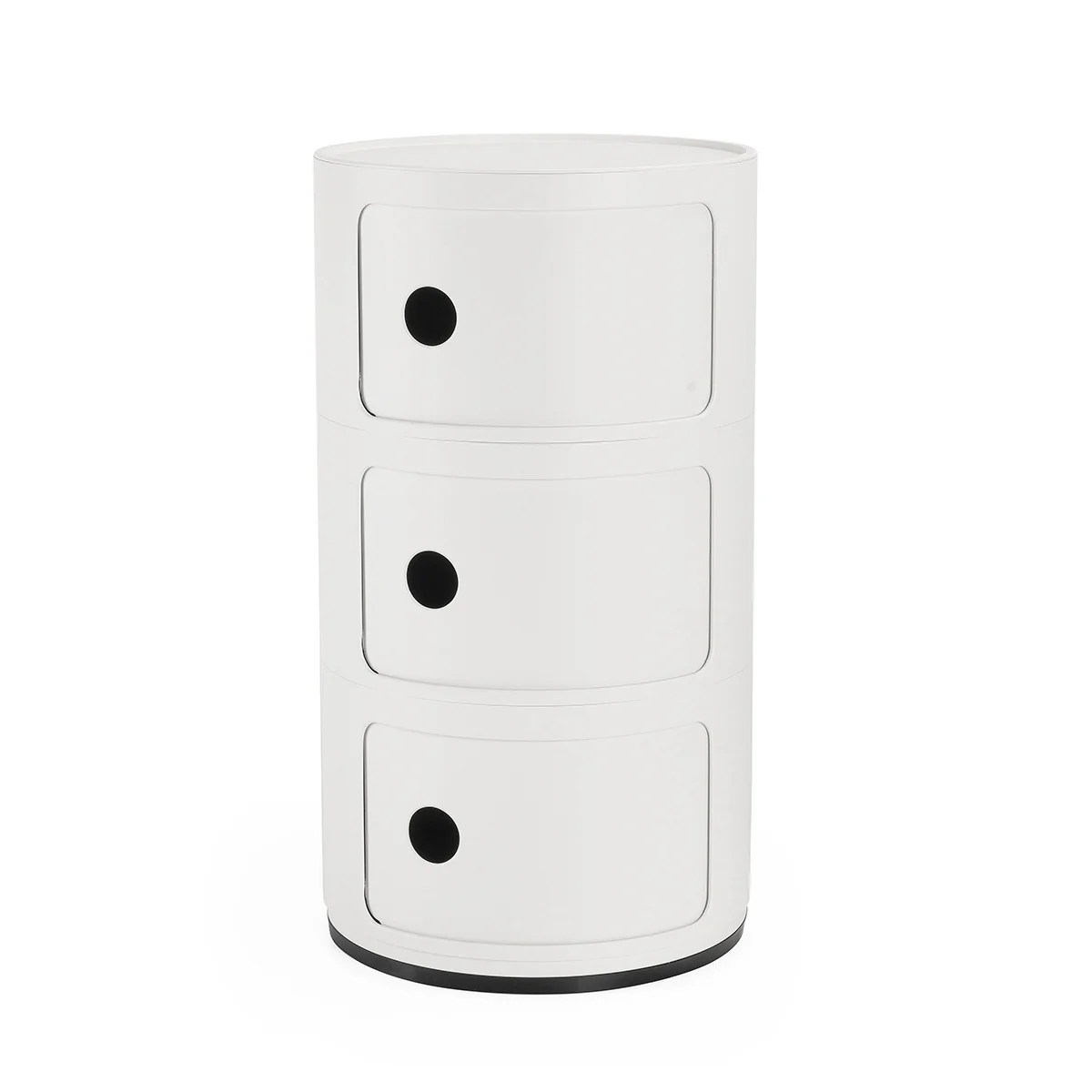 De Componibili 4988 rond met 3 compartimenten is een van de populaire designklassiekers die Anna Castelli Ferrieri ontwierp voor de fabrikant Kartell . Het eenvoudige en elegante ontwerp met matte afwerking past gemakkelijk in elke woonomgeving. In de badkamer, in de slaapkamer, in de keuken en in de woonkamer en ook in de kinderkamer biedt de container voldoende ruimte om verschillende objecten op te bergen.