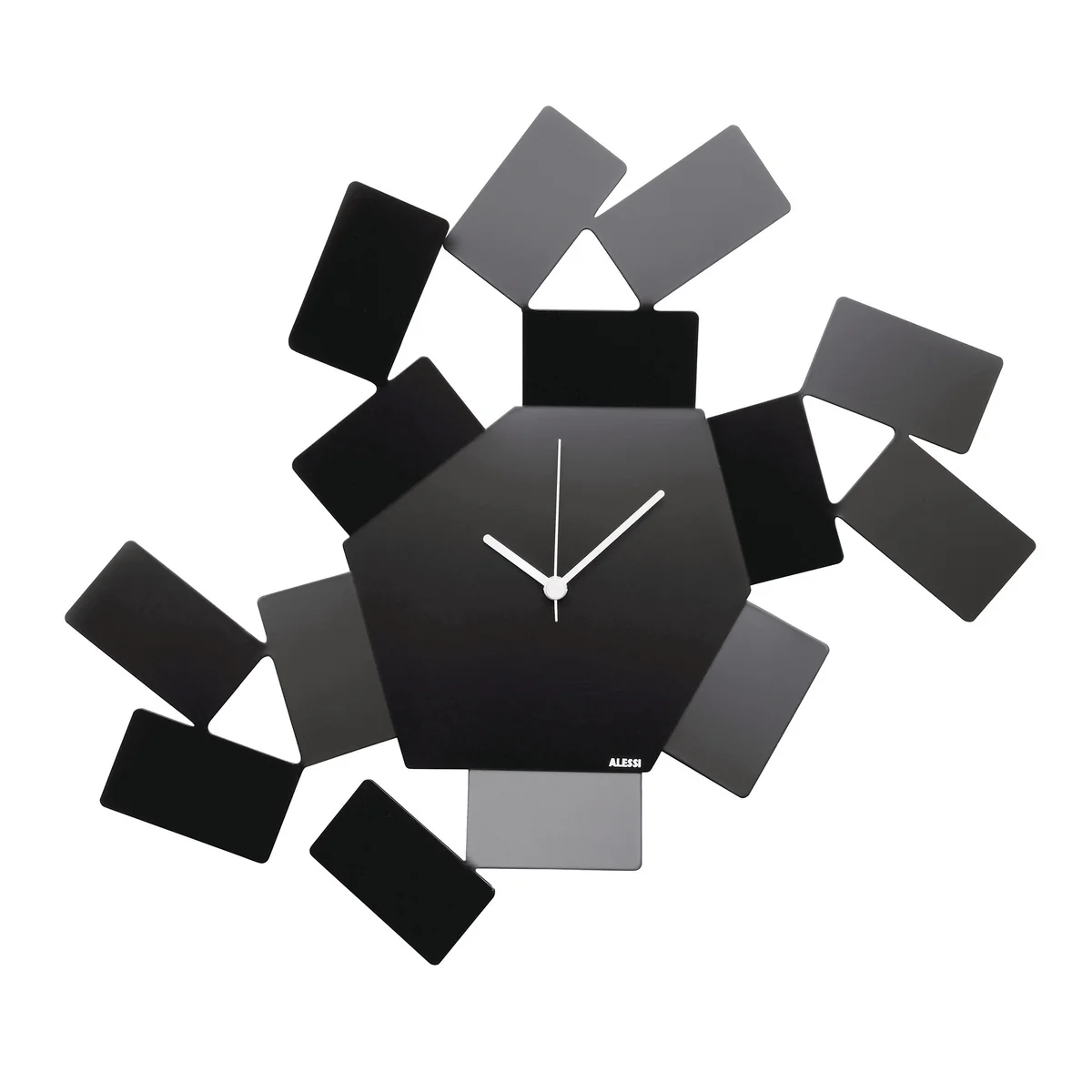 De onregelmatige vormen van de zeshoekige wijzerplaat en de laterale elementen creëren licht en schaduwspel, waardoor het object magie en beweging krijgt. Het fantasierijke ontwerp inspireert in verschillende interieurs in een breed scala aan varianten.
