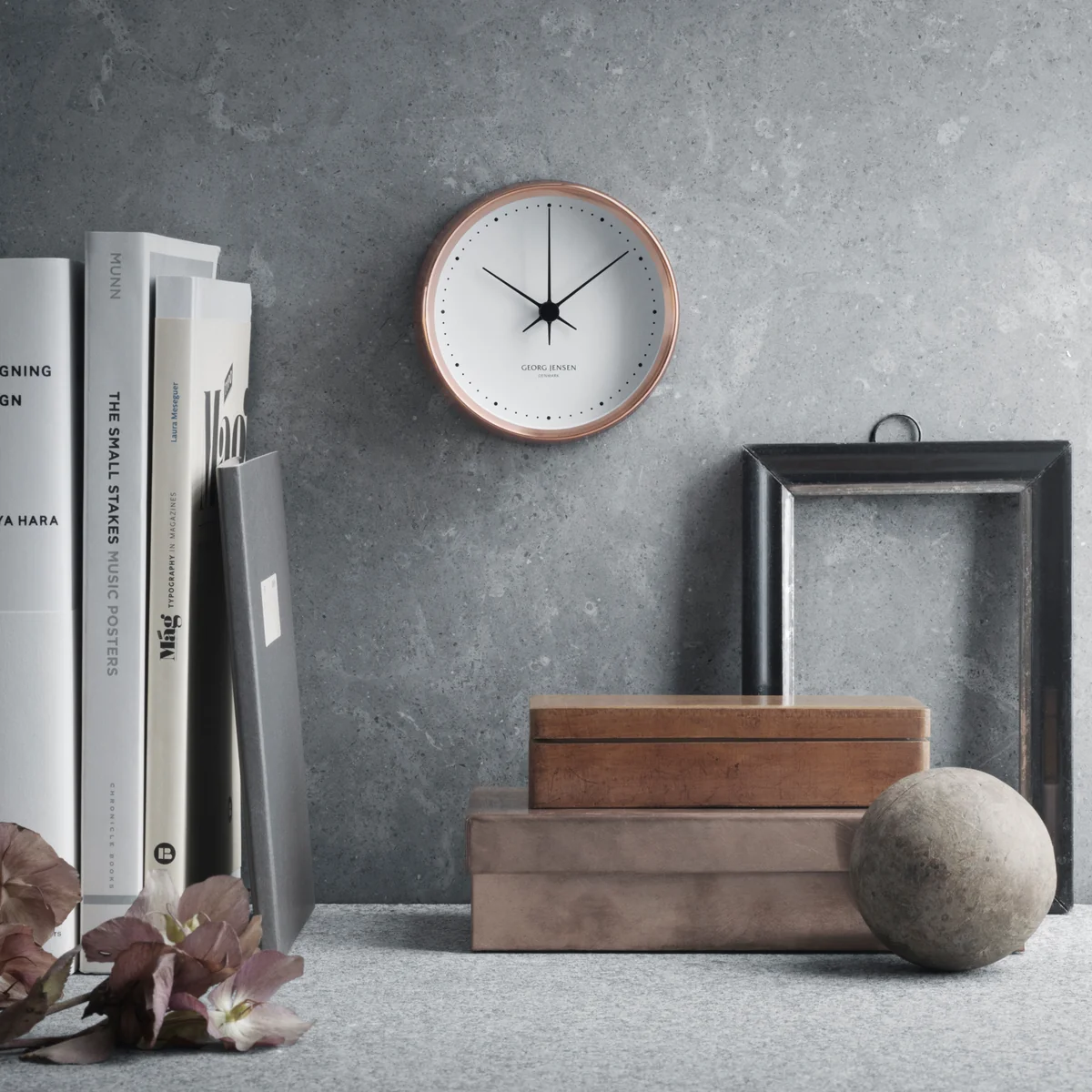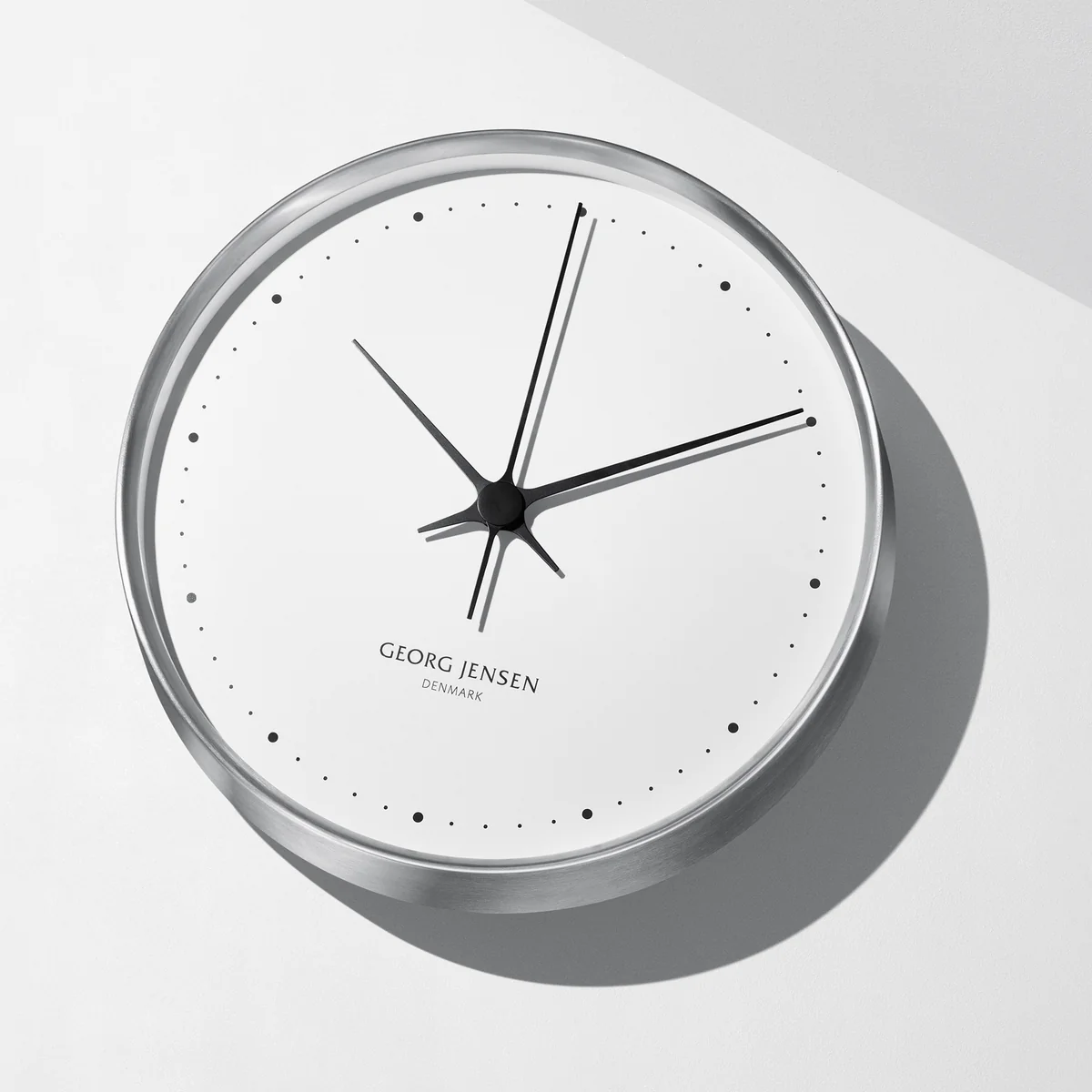 De designerklok voldoet ook aan Georg Jensen's eis in ontwerp en realisatie, volgens welke de producten van zijn zilverslagerij sinds 1904 zijn ontworpen: passend bij de tijd, maar nog steeds tijdloos.