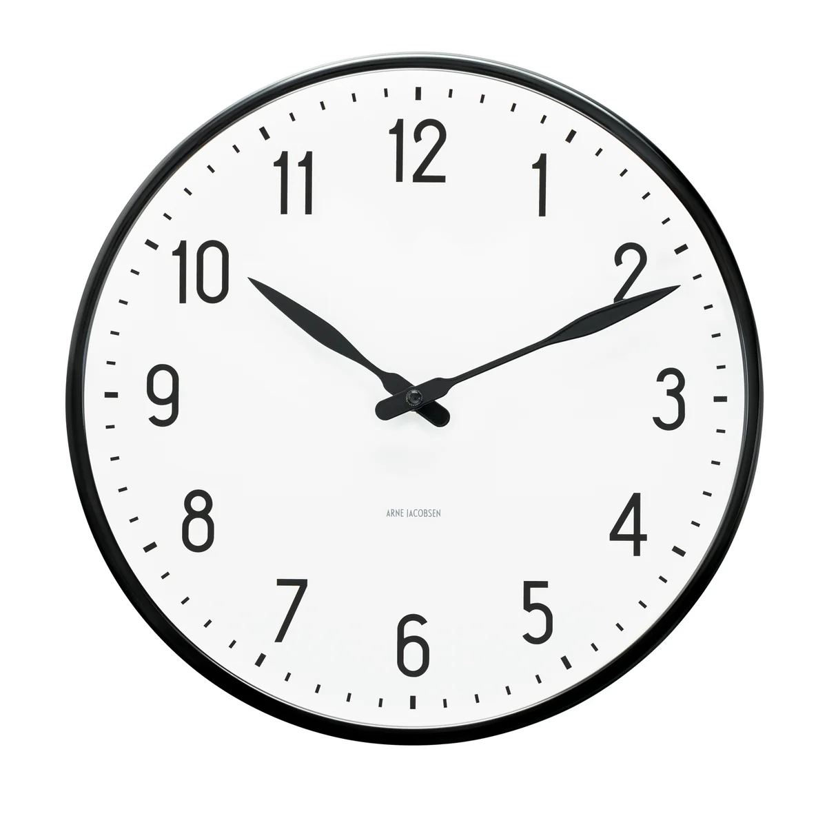 Het station, dat Arne Jacobsen oorspronkelijk in 1941 voor de fabrikant van elektrische apparaten LK creëerde, onderscheidt zich van andere Rosendahl AJ wandklokken in zijn Arabische cijfers, die zich duidelijk onderscheiden van de wijzerplaat en het verstrijken van de tijd markeren met hun karakteristieke zwart-witte handen.