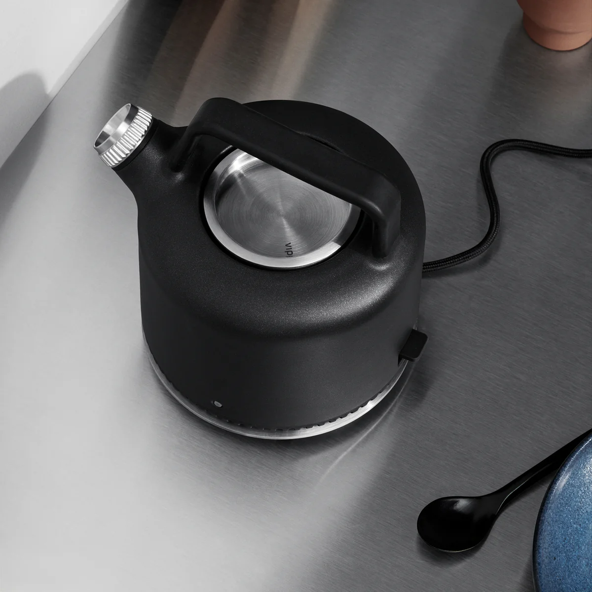 Vipp Vipp De waterkoker van maakt indruk met zijn minimalistische ontwerp, dat perfect past in een ingetogen en elegante keuken. Uitgerust met een solide gepoedercoat oppervlak, antislip rubberen details en een verwijderbaar filter en schenktuit, combineert hij esthetische elegantie met uitstekende functionaliteit. De dubbelwandige constructie zorgt voor een optimale isolatie, die niet alleen hittebestendig is, maar er ook voor zorgt dat het water lang warm blijft.