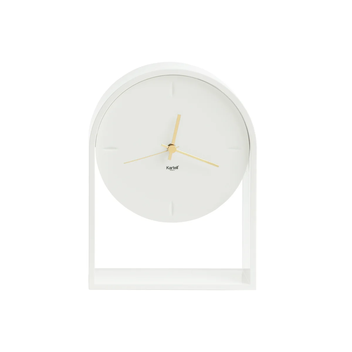 De Air du Temps tafelklok van Kartell is een ontwerp van de Catalaanse ontwerper Eugeni Quitllet, die in zijn werk extravagantie en lichtheid heeft benadrukt. Terwijl de tijd wordt weergegeven op een gepolijste wijzerplaat, zorgt het puristische frame van thermoplastisch technopolymeer voor een vrijwel gewichtloos uiterlijk met zijn transparantie.