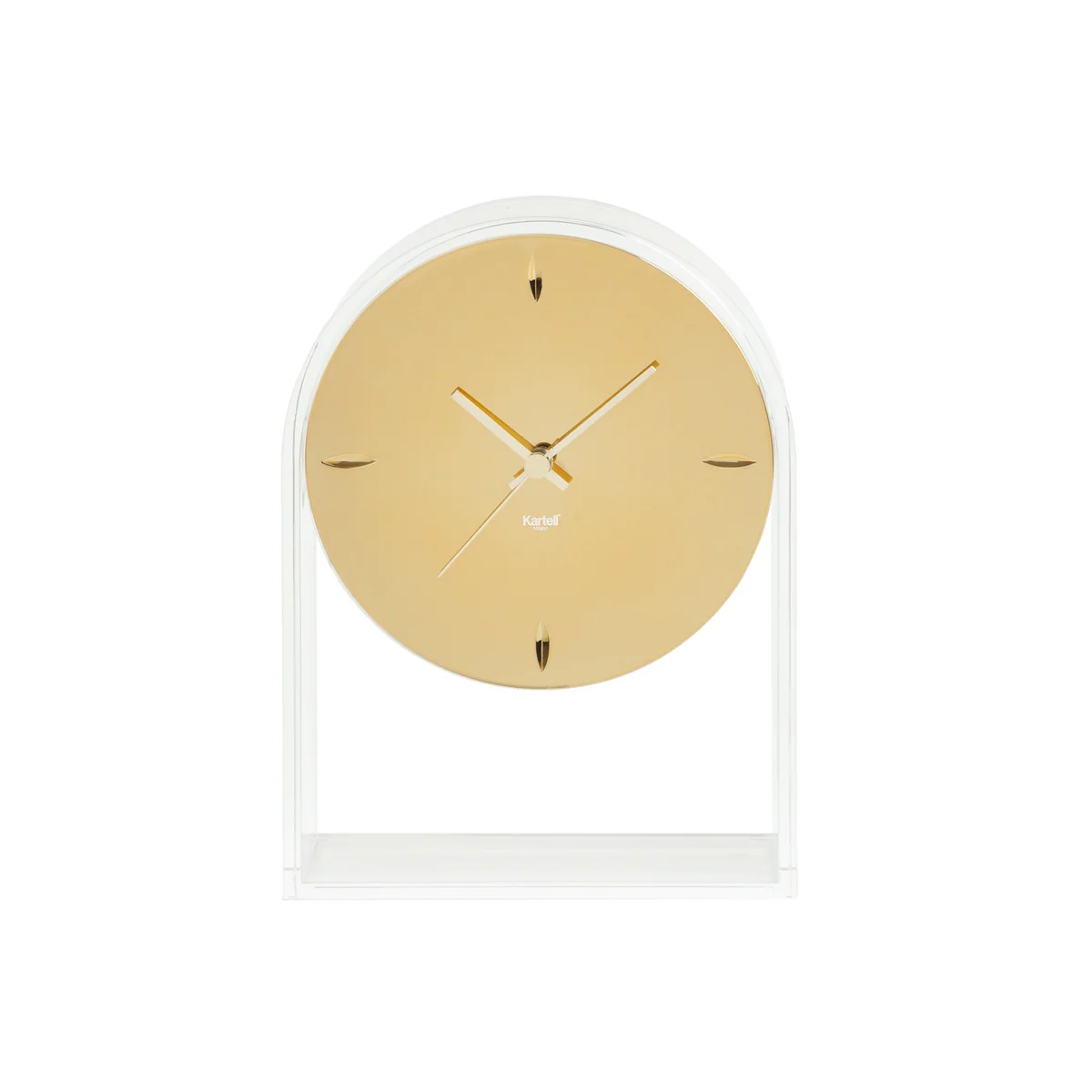 De Air du Temps tafelklok van Kartell is een ontwerp van de Catalaanse ontwerper Eugeni Quitllet, die in zijn werk extravagantie en lichtheid heeft benadrukt. Terwijl de tijd wordt weergegeven op een gepolijste wijzerplaat, zorgt het puristische frame van thermoplastisch technopolymeer voor een vrijwel gewichtloos uiterlijk met zijn transparantie.