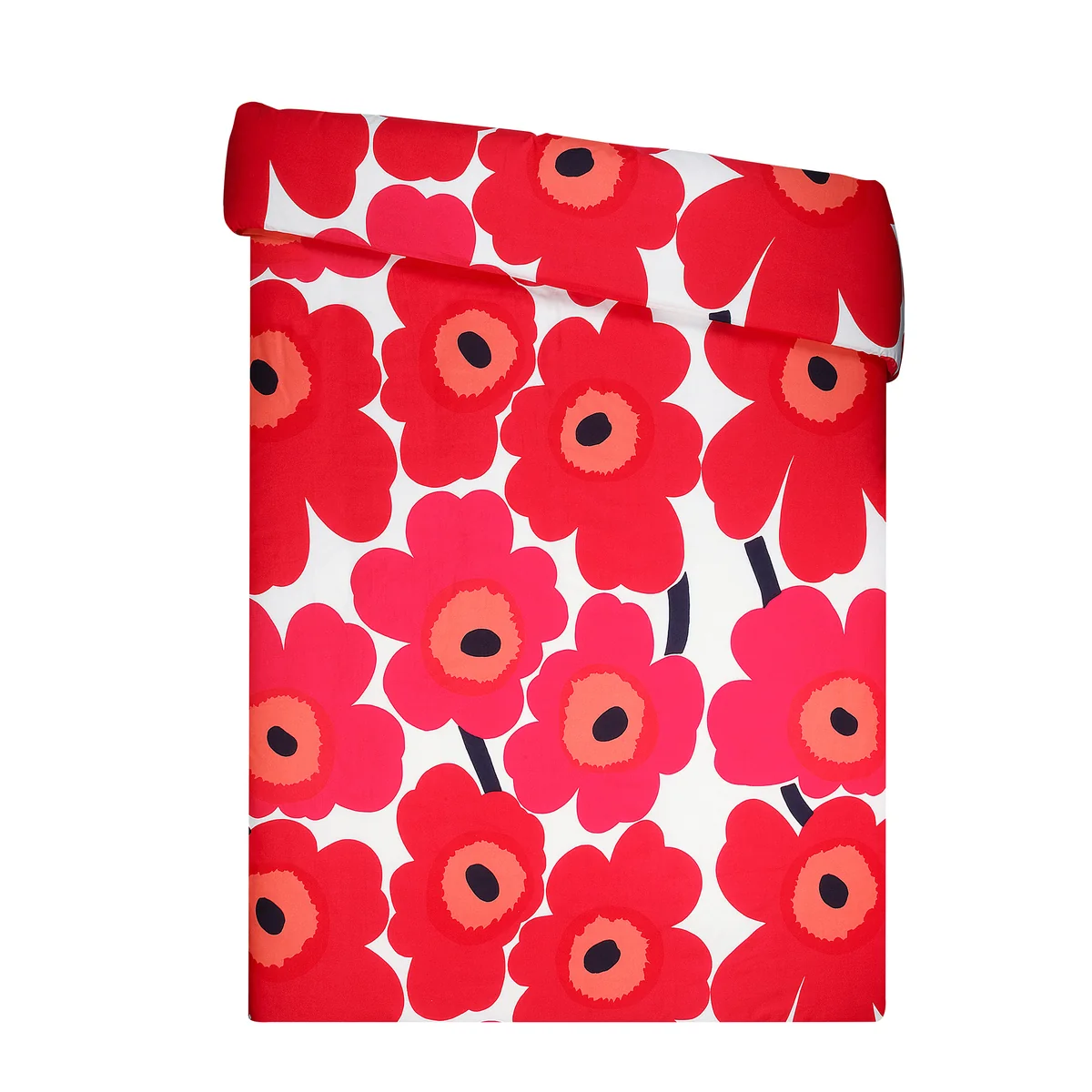 Het Unikko dekbedovertrek is een designicoon dat vaak cadeau wordt gedaan. En dat is geen wonder, want wie wil er nu niet slapen in een zee van bloemen? Het bloemenpatroon uit 1964 ziet er vandaag nog even fris uit als altijd, want goed design kent geen leeftijd. Ontwerpster Maija Isola heeft het met Unikko (ze is erin geslaagd om de schoonheid van de natuur te vangen in een helder, vrolijk patroon.