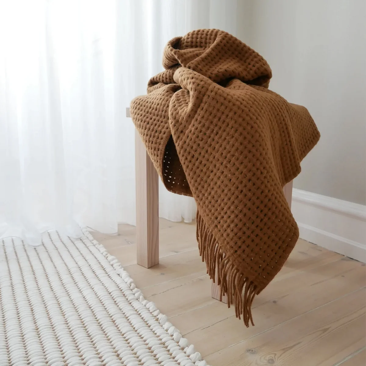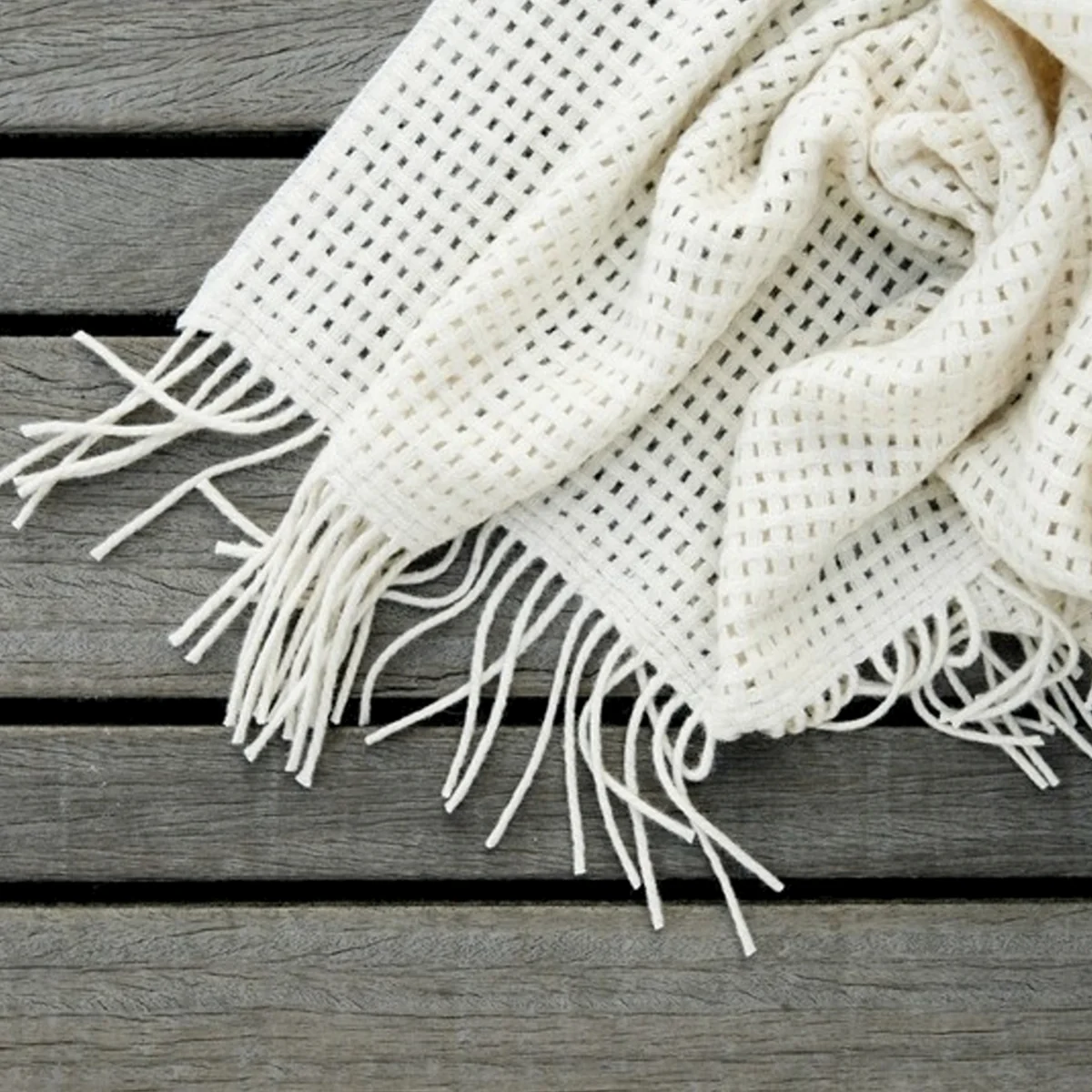 Geweven deken gemaakt van gerecycleerde alpaca en schapenwol