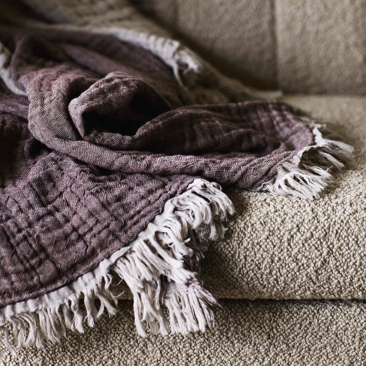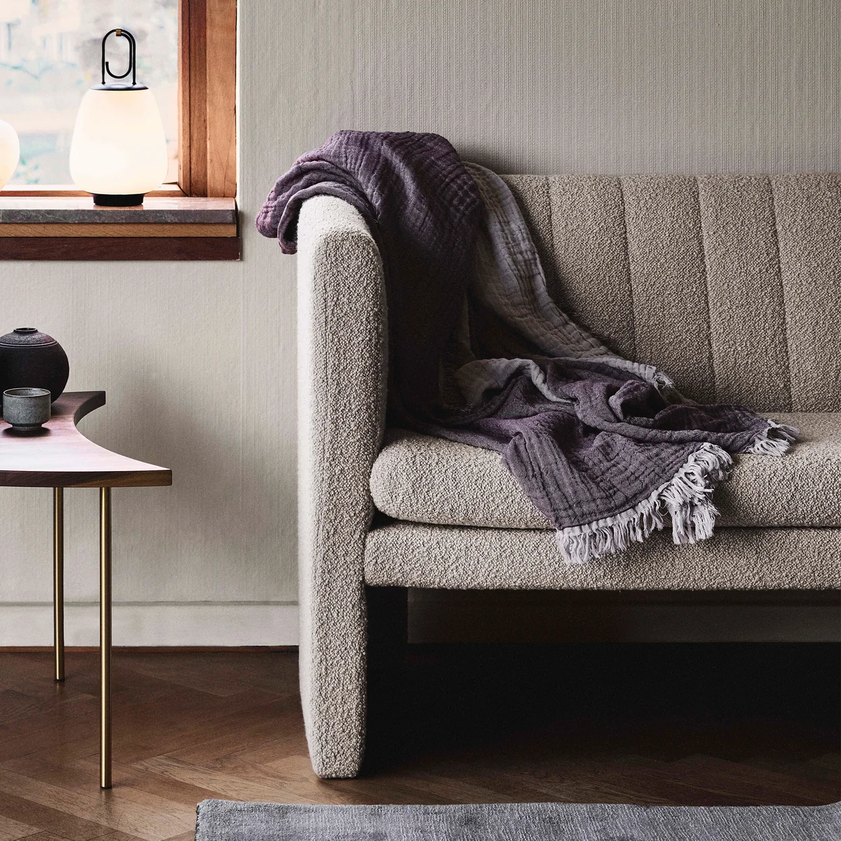De Collect SC32 deken maakt deel uit van & Tradition Collect, een serie handgemaakte meubels en zachte voorwerpen voor in huis. De deken, ontworpen door Space Copenhagen, is gemaakt van 100% biologisch katoen en bestaat uit 3 lagen fijn geweven katoen, afgewerkt met grove, halfgedraaide franjes aan alle zijden.