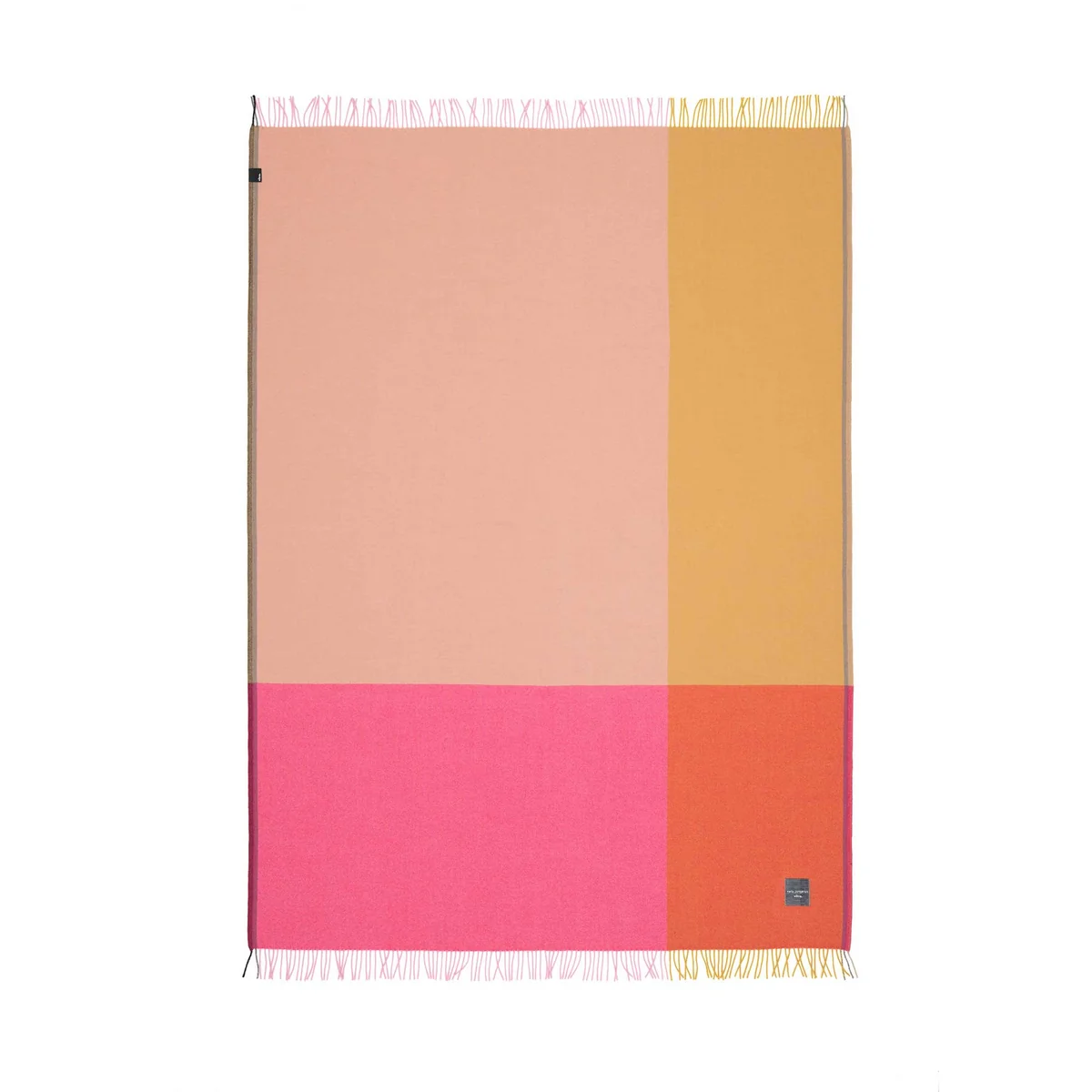 Vier contrasterende kleurblokken vormen een decoratief totaalbeeld op het kleurendoek van Hella Jongerius voor Vitra. De deken is gemaakt van Peruaanse Hooglandwol - wol van een kruising van het Merino schaap dat bekend staat om zijn zachte wol en van het Corriedale schaap met zijn ruwe wol.
