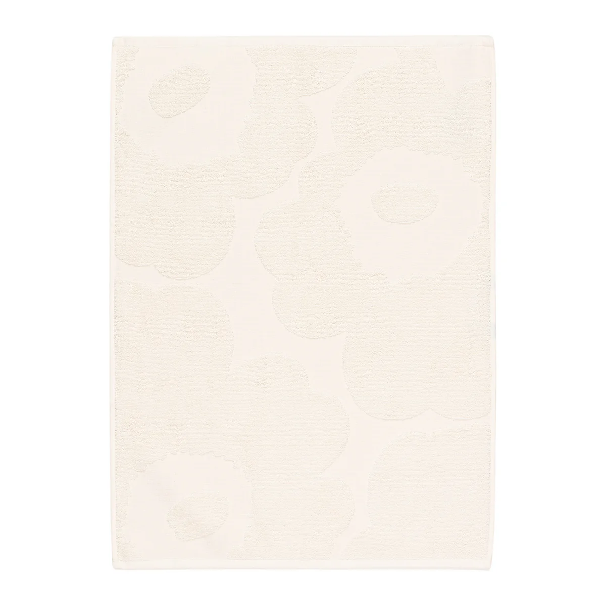 Marimekko Het Unikko patroon van Maija Isola is een van de bekendste ontwerpen van . De Solid versie toont het patroon niet zoals gebruikelijk in kleurrijke nuances, maar met een verhoogd reliëf. Het bloemenpatroon siert de katoenen handdoeken nu op een subtielere maar niet minder charmante manier met