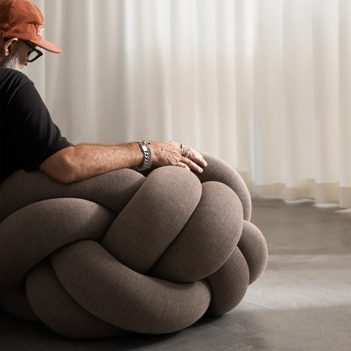 Knot XL van Ragnheidur Sigursdottir voor Design House Stockholm is een fantasievorm die zijn inspiratie haalt uit het maken van knopen en breien, waarbij sculpturale vormen worden verkend in plaats van gewone patronen. Het originele Knot -kussen was deels geïnspireerd op een poging om poten voor een teddybeer te maken in plaats van ze te haken en werd een knus kunstwerk. De XL -versie is nog meer: een nieuw zitje dat zich aan iedereen aanpast en een perfecte manier om op dezelfde hoogte te zitten als de allerkleinsten.