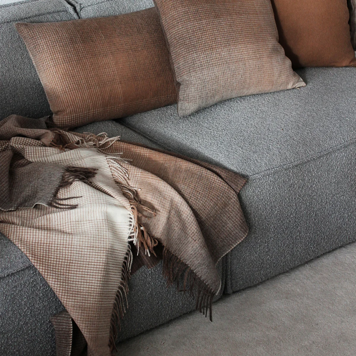 De kussenhoes is gemaakt van 50% alpacawol, 40% schapenwol en 10% microvezel. Het weven van stoffen van alpacavezels is een traditie die teruggaat tot de Inca-tijd. Alpacavezels zijn zacht, duurzaam en warmer dan andere natuurlijke vezels. Alpacawol pluist heel weinig, dus de producten behouden hun structuur gedurende een lange periode.