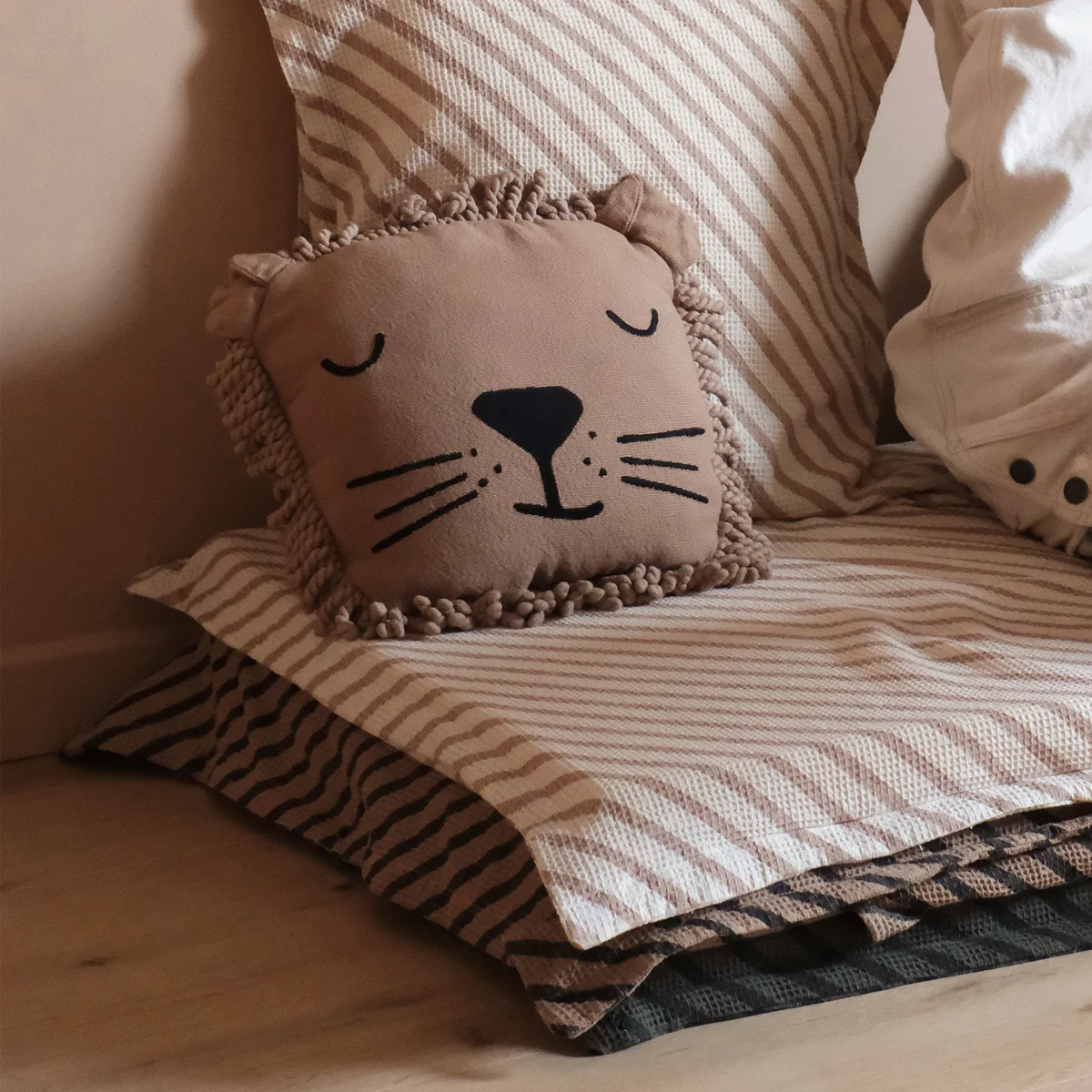 De dierenkussens van Nobodinoz zijn een speelse en gezellige manier om kinderkamers te versieren. Ontworpen in de vorm van een luipaard, leeuw of aap, zijn de kussens een geweldige blikvanger in de speelkamer.