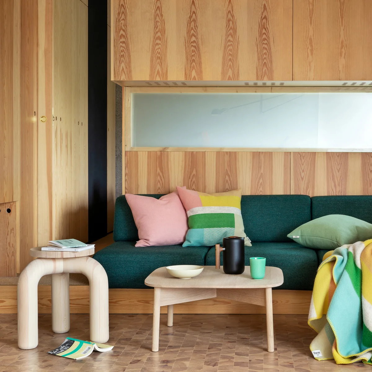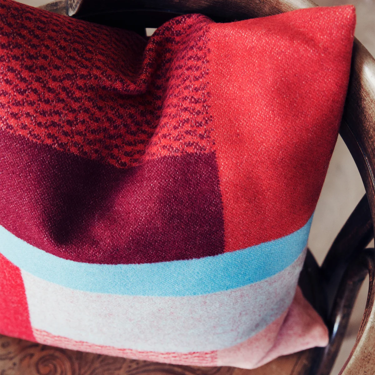 Het Mikkel kussen van Røros Tweed is een echte prijswinnaar! De Mikkel -serie van ontwerpster Kristine Five Melvær werd gepresenteerd op het ICFF in New York in 2015 en werd bekroond als beste textiel bij de ICFF Editors Awards. Het motief combineert geometrische patronen geïnspireerd op de Bauhaus-beweging en Noorse weeftradities op een moderne manier. De collectie is gemaakt van lamswol en is verkrijgbaar in verschillende kleuren en afwerkingen.