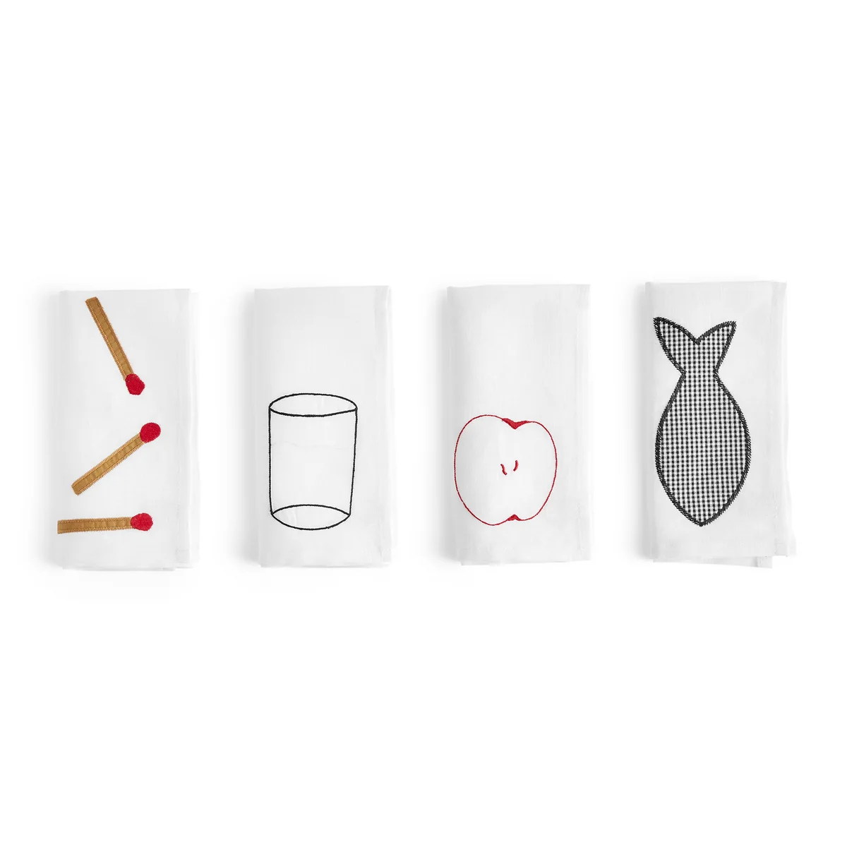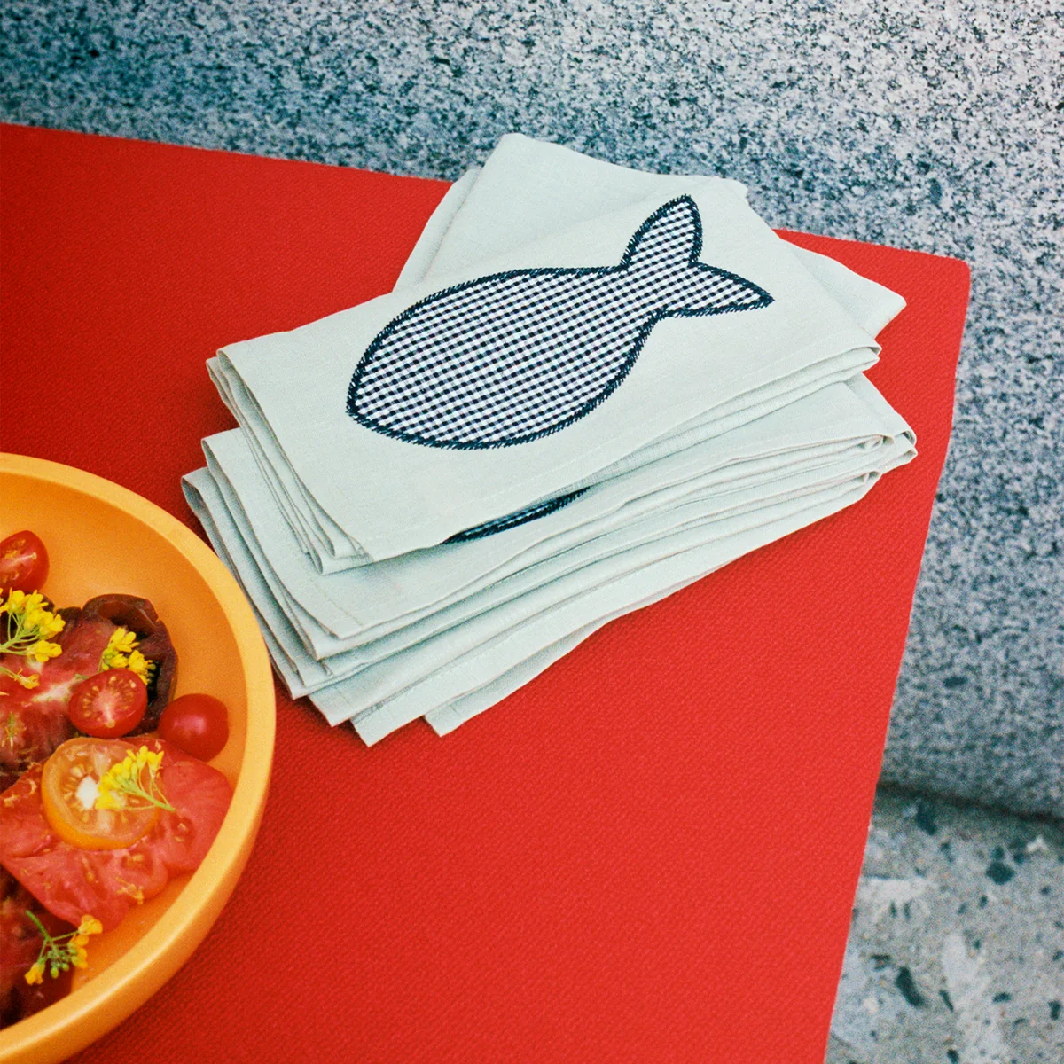 De Sobremesa servettenset van kunstenaar Laila Gohar in samenwerking met het Deense label HAY viert het samenzijn met vrienden en familie. Het maakt deel uit van de Sobremesa serie, die de sfeer van een maaltijd in een oogwenk op een verfijnde manier versterkt. Gemaakt van hoogwaardig OEKO-TEX® linnen, zijn de servetten versierd met prachtig, kleurrijk borduurwerk en geappliqueerde motieven. Met hun decoratieve accenten, de Sobremesa servetten zijn verkrijgbaar in verschillende kleuren. Ze kunnen alleen worden gebruikt of samen met het tafelkleed uit de gelijknamige collectie.