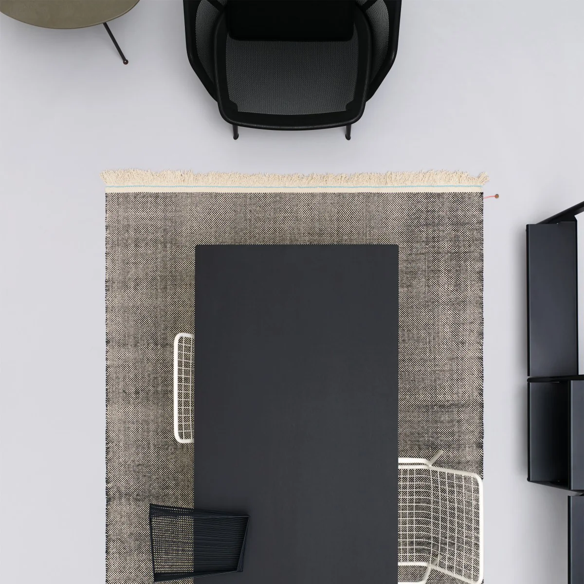 De Duotone tapijt van Kvadrat overtuigt door zijn eenvoud. De Duotone bestaat uit slechts twee kleuren. Het mengsel van de twee creëert een expressief tapijt.