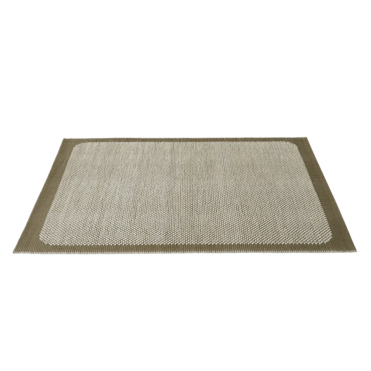 Voor het Pebble Muuto pebble vloerkleed van, liet ontwerpster Margrethe Odgaard zich inspireren door kleine kiezelsteentjes ( ) op het strand. Het oppervlak van het vloerkleed wordt gekenmerkt door talrijke, kleine wollen lussen die niet alleen visueel maar ook haptisch doen denken aan het gevoel van blootsvoets over een kiezelstrand te lopen. Het tapijt in een sobere Scandinavische stijl is een geweldige blikvanger en creëert een gezellige sfeer in de kamer dankzij de handgeweven wolstructuur.