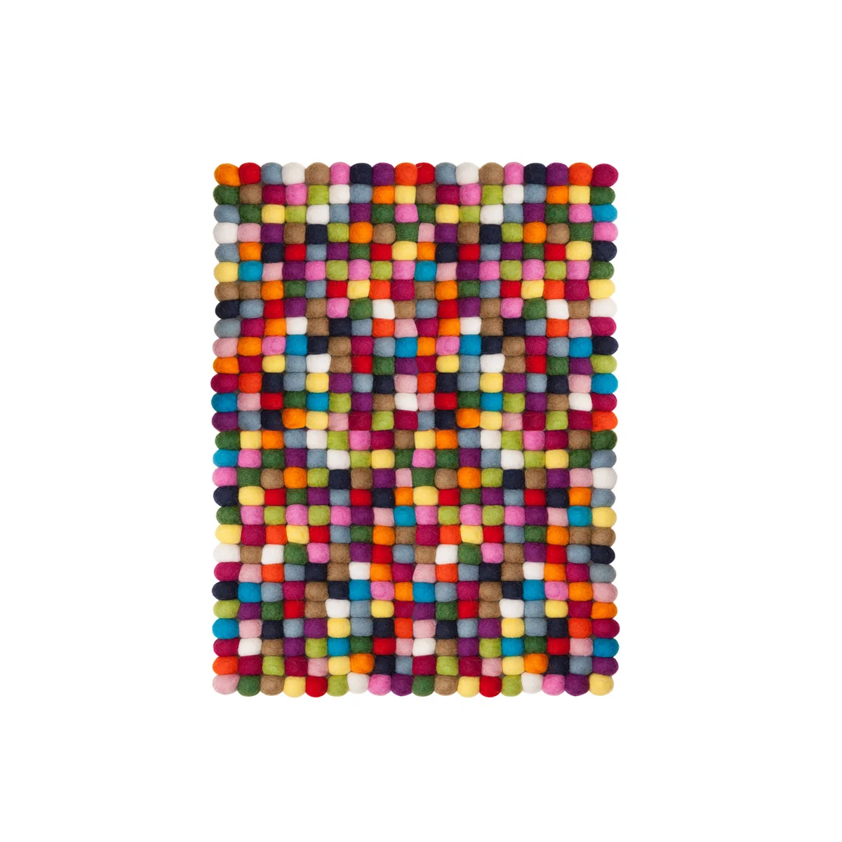 Het rechthoekige vilten bolletjesdeken van myfelt is kleurrijk en springt meteen in het oog. De felgekleurde vilten ballen trekken ieders aandacht en brengen vrolijkheid in elke kamer. Of het nu in de woonkamer is of in de kinderkamer.