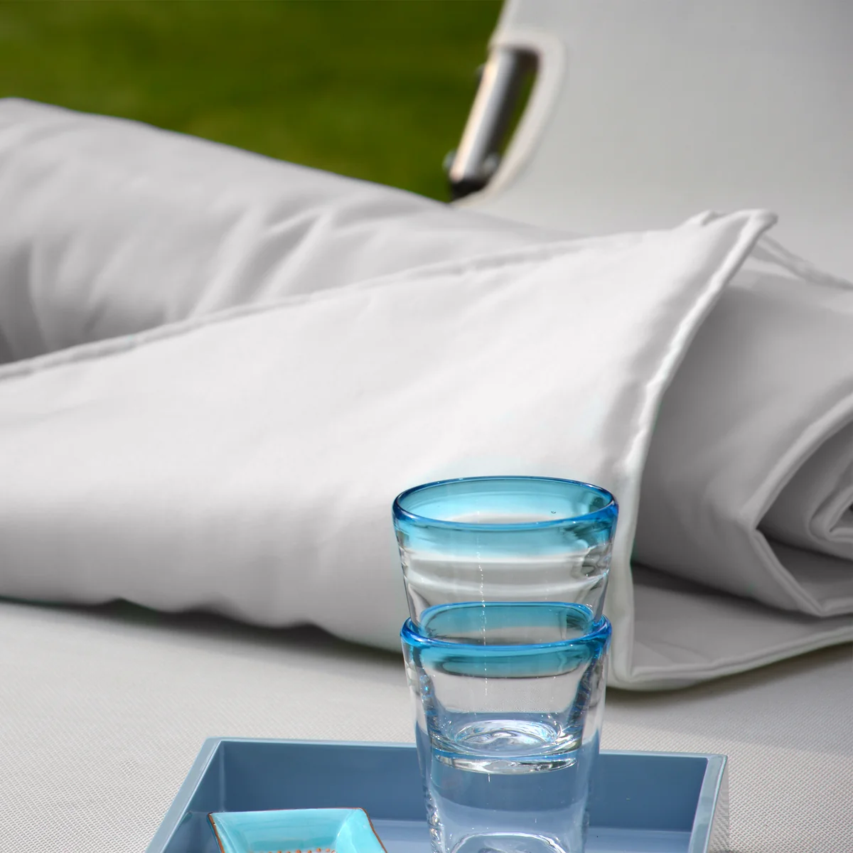 De Rimini vulling van Jan Kurtz maakt de zonnebank uit de gelijknamige collectie nog comfortabeler. Het is voorzien van een non-woven vulling en de bekledingsstof bestaat voor 100% uit poly-acryl. Hierdoor is de Edition weerbestendig en beschermt deze tegen UV-stralen. Bij hevige regenbuien moet de vulling echter in het huis worden meegenomen.
