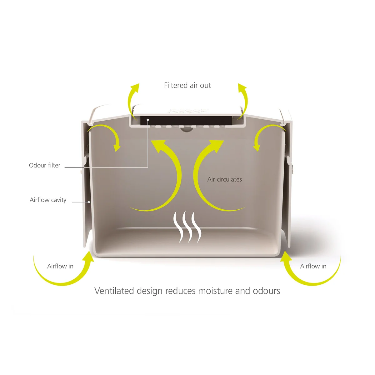 De Stack 4 bioafvalbak met geurfilter Joseph Joseph is speciaal ontworpen om de geur van bioafval te verminderen en in te dammen. Het unieke ontwerp zorgt voor een goede luchtcirculatie in de emmer, wat helpt om de vorming van vocht te verminderen. Dit is waar de belangrijkste oorzaak van onaangename geuren wordt gevonden. Er zit ook een vervangbaar geurfilter in het deksel, dat slechte geuren veilig opvangt.