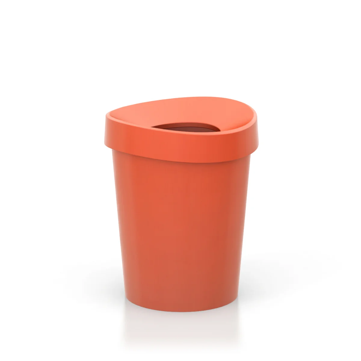 De Happy Bin is gemaakt van robuust plastic in verschillende kleuren. Het wordt gekenmerkt door zijn licht onregelmatige vorm en speelse kwaliteit die een vrolijk tintje geeft aan de anders vervelende werkdag. Het deksel kan eenvoudig worden verwijderd om de bak te legen.