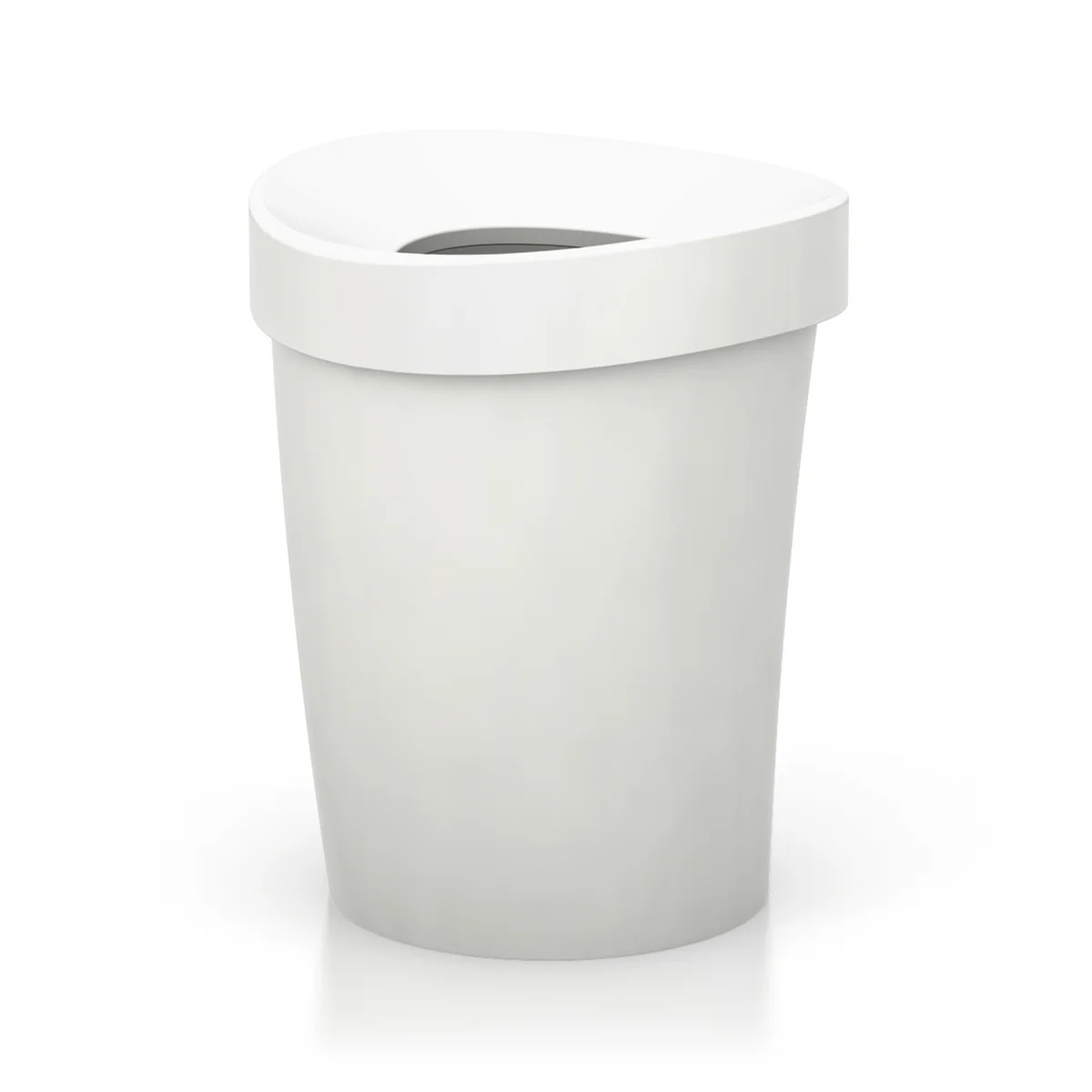 De Happy Bin is gemaakt van robuust plastic in verschillende kleuren. Het wordt gekenmerkt door zijn licht onregelmatige vorm en speelse kwaliteit die een vrolijk tintje geeft aan de anders vervelende werkdag. Het deksel kan eenvoudig worden verwijderd om de bak te legen.