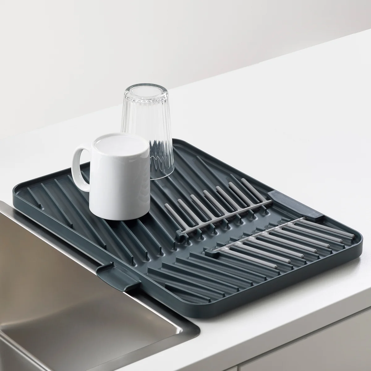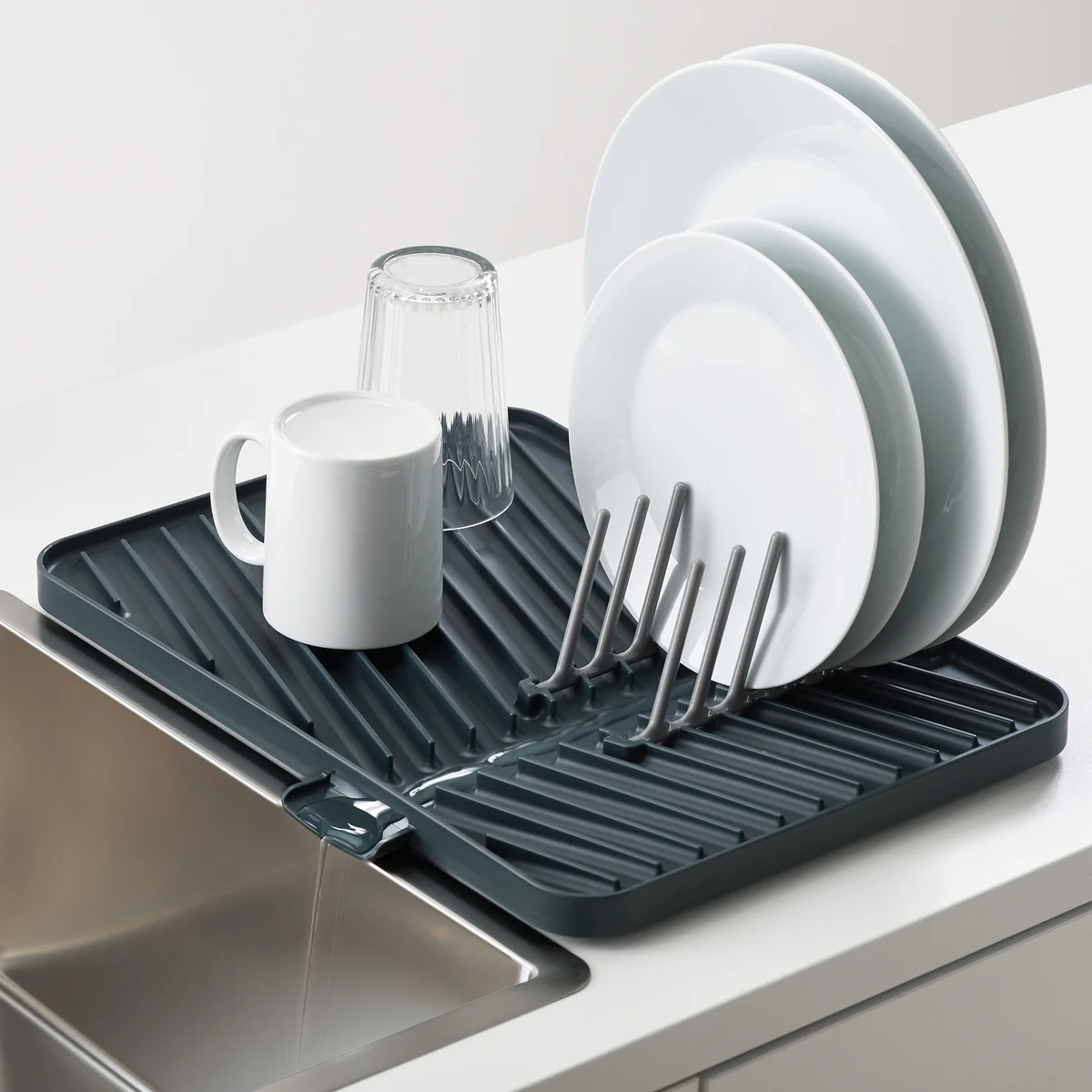 Flip up van Joseph Joseph Joseph Joseph is een praktische en opvouwbare afdruiprek voor het drogen van 6 borden en een verscheidenheid aan kopjes, glazen en kommen. Na gebruik kan het eenvoudig worden opgevouwen en compact worden opgeborgen.