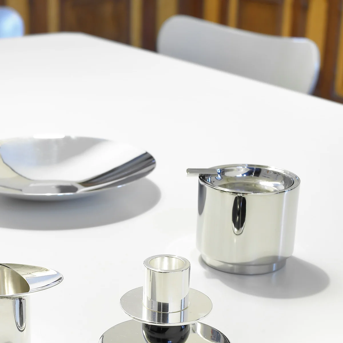 De asbak MB 23E van Marianne Brandt is een echte Bauhaus-klassieker en een dagelijks gebruikt object. De vorm en de functie zijn universeel en tijdloos.