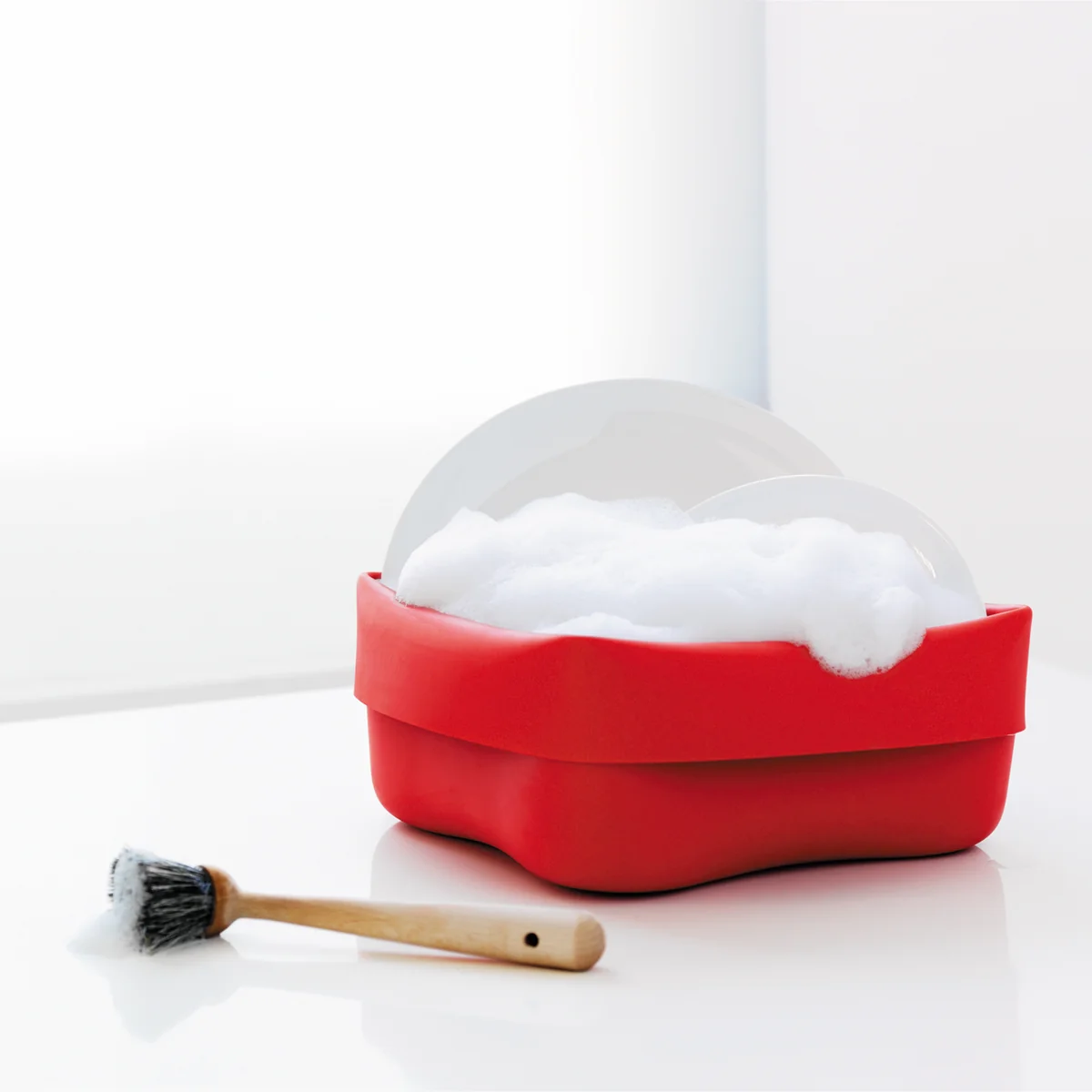 Het idee van de Washing up bowl kwam naar ontwerper Ole Jensen op een goede dag terwijl hij - hoe kan het ook anders - de afwas deed in zijn eigen keuken. Hij aarzelde toen hij het gemakkelijk breekbare porselein en glazen vaatwerk in de harde, stalen gootsteen wilde plaatsen.