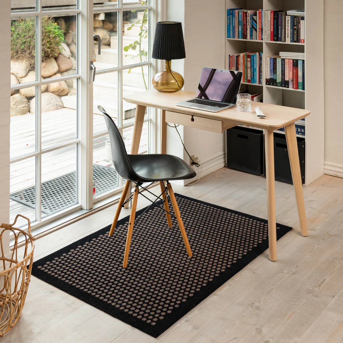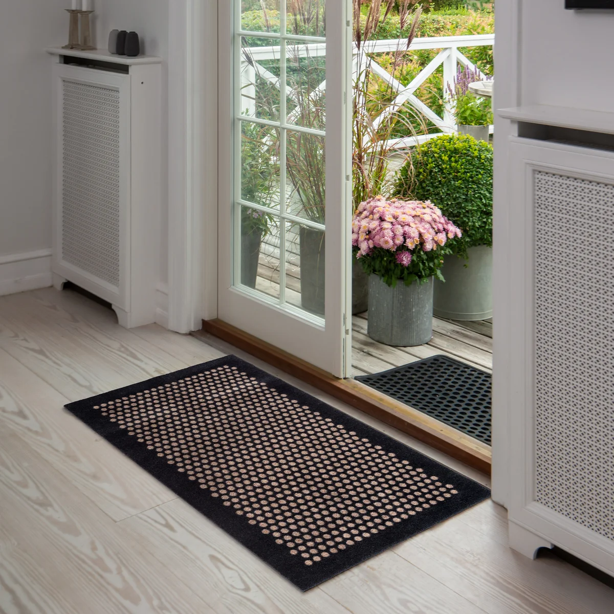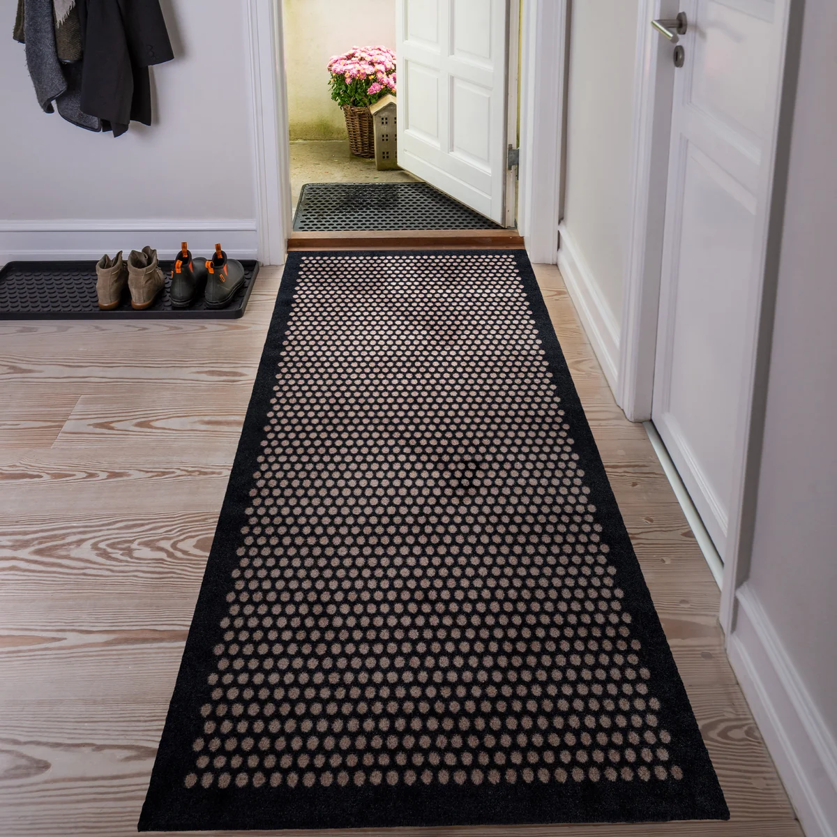 De Dot Deurmat in zwart/grijs van tica copenhagen is een elegante en tegelijkertijd praktische oplossing voor de entree. De deurmat met het stippendessin is een praktische vuilvanger en discrete blikvanger die de hal of trap beschermt tegen vuil en vocht.