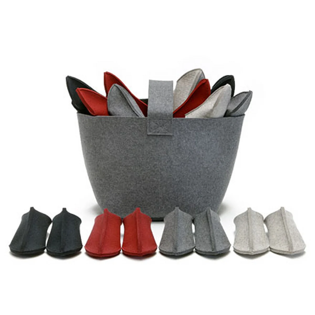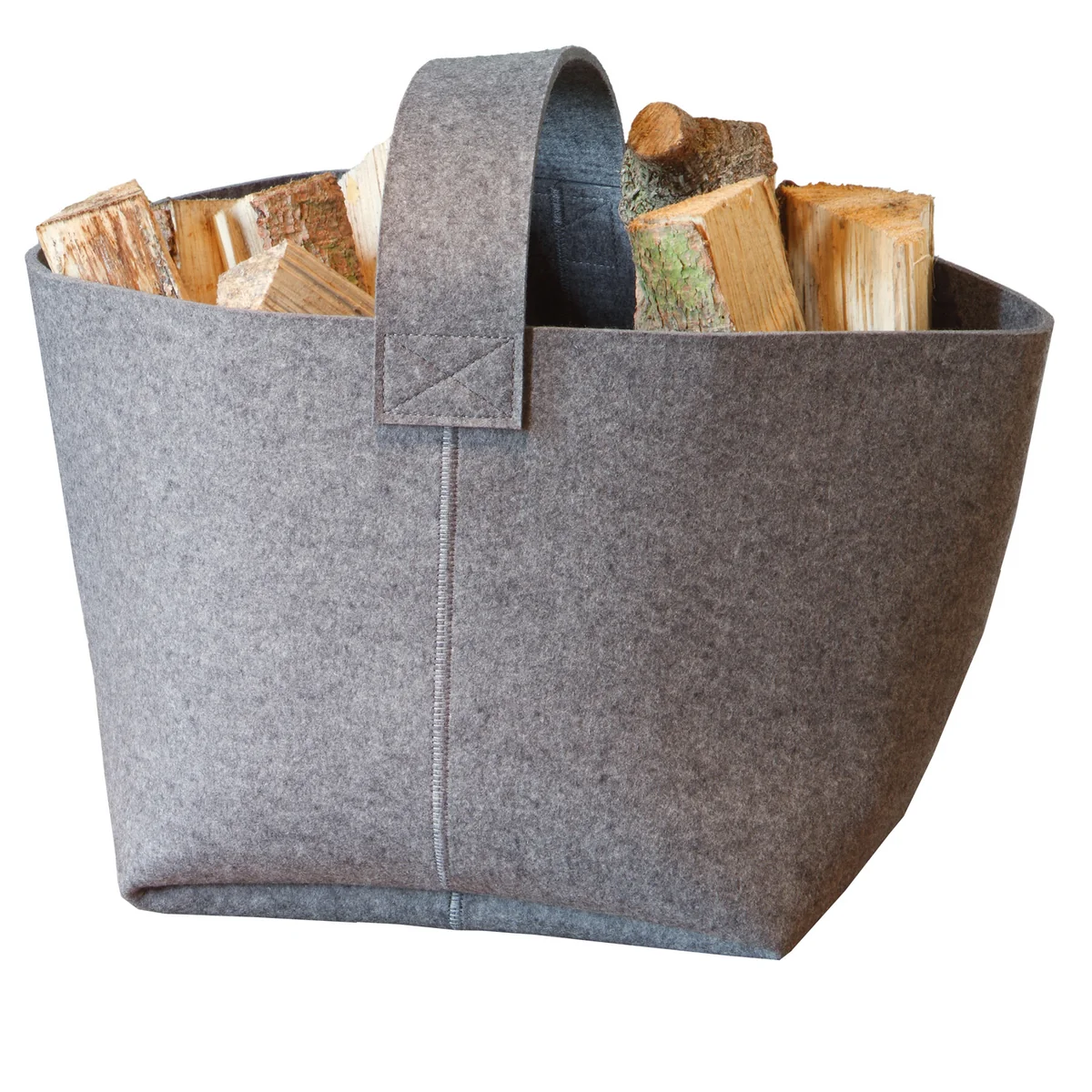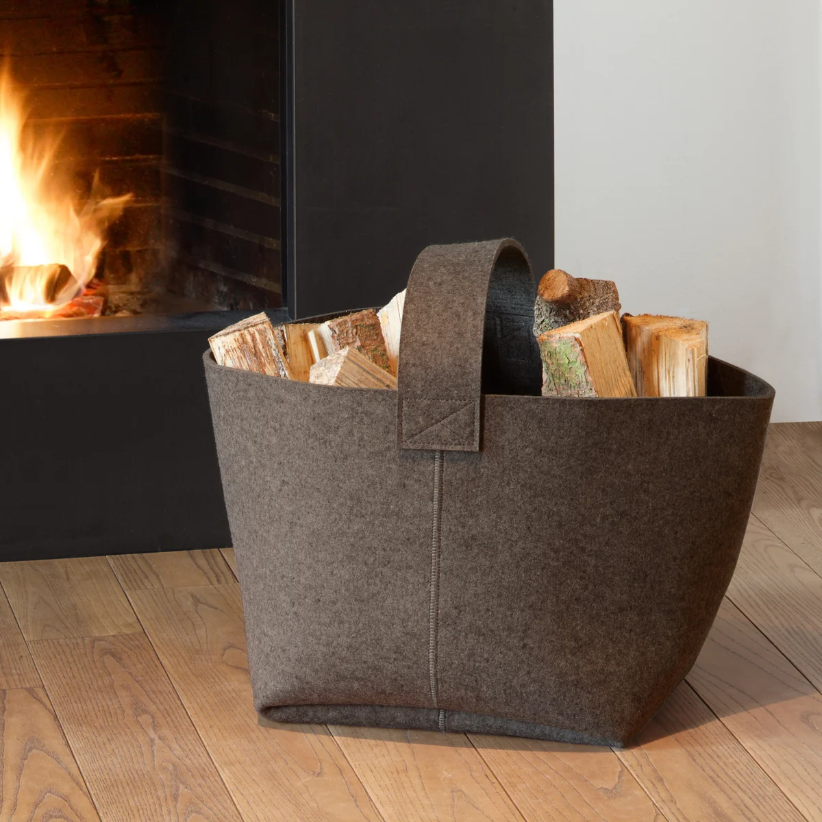 De openhaard-houten mand van Hey Sign is een innovatieve mand van vilt. Sommige mensen zouden de mand een tas noemen, omdat hij geen massieve muren of kussentjes heeft, maar alleen van vilt is gemaakt.