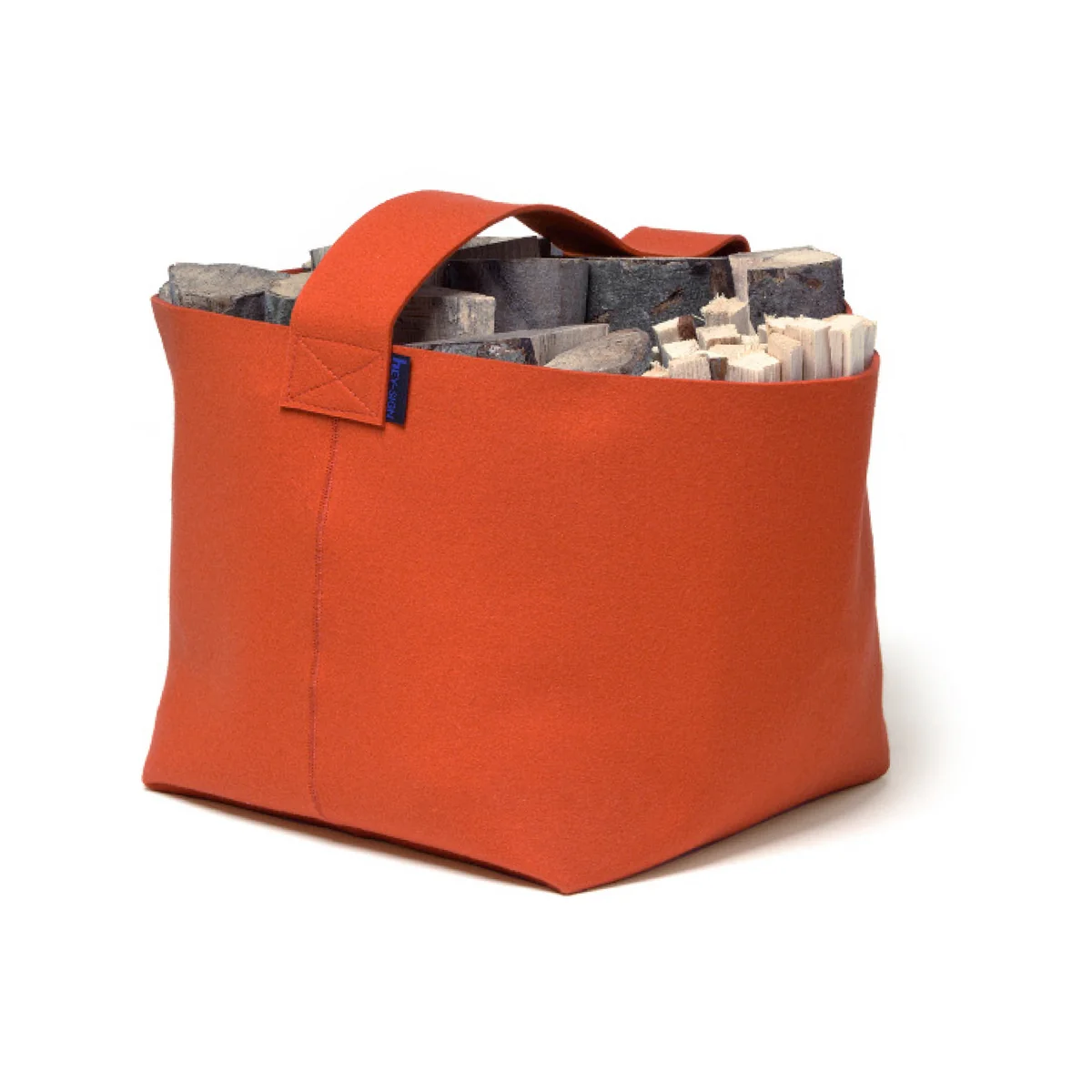 En zo speelt het vilt zijn kwaliteiten ook in de vorm van een openhaard-houten mand. De mand is onverwacht robuust en houdt het gewicht van veel houtblokken zonder problemen vast. En de mand is gemakkelijk schoon te maken. Deze eigenschappen maken het ontwerp van de openhaard-houten mand van Hey Sign mogelijk, als het vilt niet zo robuust zou zijn als het is, zou het ontwerp niet zo licht kunnen zijn als het is.