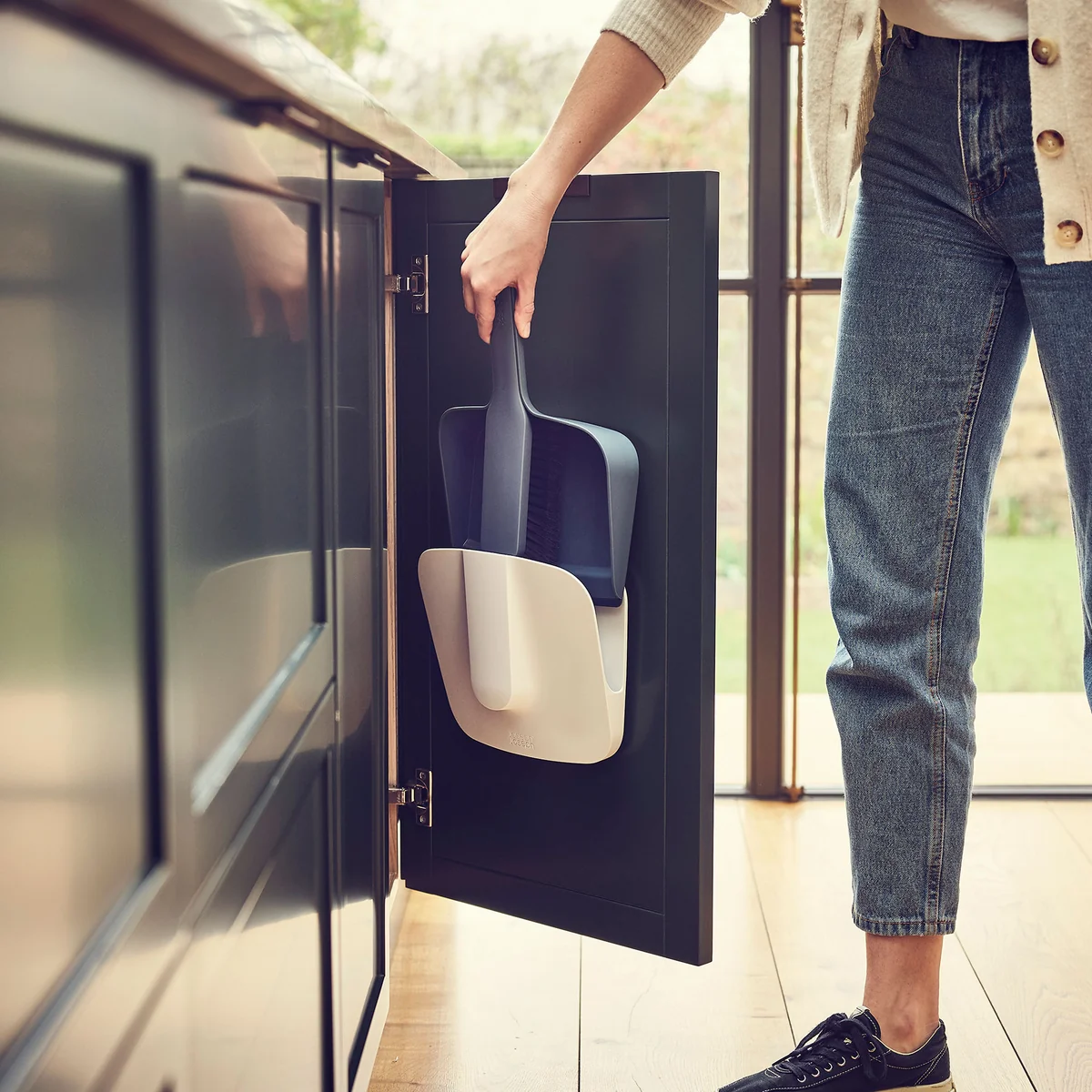 De CleanStore Stofblik & Borstelset van Joseph Joseph is het antwoord op al je schoonmaakbehoeften als het gaat om moeiteloos schoonmaken. Met zijn slimme wandbeugel is hij niet alleen makkelijk en schoon op te bergen, maar de set zelf maakt ook indruk met slimme functies. De zachte, gevederde haren van de borstel zorgen voor een grondige verwijdering van stof en vuil, terwijl de rubberen rand op de stoffer zorgt voor een optimaal contact, zelfs op oneffen oppervlakken. De opstaande rand aan de voorkant van de stoffer voorkomt dat vuil dat al is opgeveegd eraf valt, voor een schoon resultaat. Maar het mooiste is: de handborstel en de stoffer kunnen eenvoudig in elkaar worden gestoken, wat niet alleen het schoonmaken maar ook het opbergen perfect organiseert. Met de CleanStore stoffer & borstelset van Joseph Joseph wordt schoonmaken kinderspel en brengt het orde in elk huishouden.