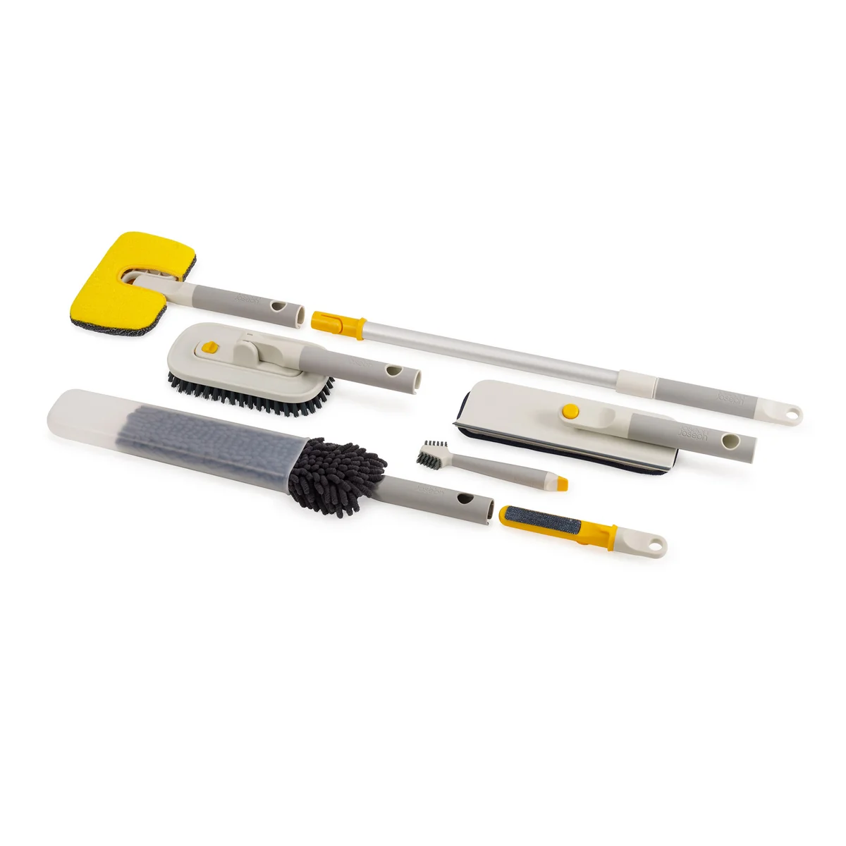 De CleanTech schoonmaakset biedt een compacte en functionele oplossing voor het schoonmaken van een groot aantal oppervlakken - zelfs op moeilijk bereikbare plaatsen. Hij bevat vijf geavanceerde schoonmaakhulpstukken en een uitschuifbare aluminium telescoopsteel met antisliphandgreep. De opzetstukken kunnen eenvoudig worden verwisseld met het clip-in systeem en kunnen zowel met de hand als met de steel worden gebruikt. Ideaal voor ramen, tegels, meubels, technische oppervlakken en smalle ruimtes.