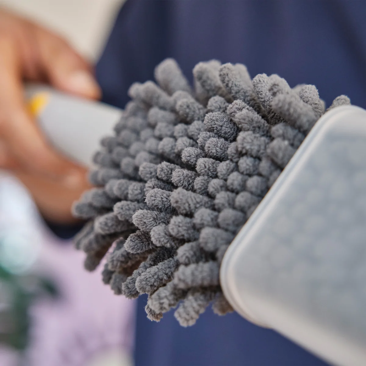 Deze innovatieve plumeau combineert twee zeer effectieve reinigingszijden in één: een fijne microvezelzijde voor gladde oppervlakken en een gestructureerde noedelstofzijde voor oneffen oppervlakken zoals plinten of meubelranden. Stof en pluisjes kunnen eenvoudig van de plumeaukop worden verwijderd met het meegeleverde reinigingsgereedschap. De beschermende opberghoes zorgt voor hygiënisch opbergen. Voor moeilijk bereikbare plaatsen kan de plumeau worden gecombineerd met de CleanTech - telescopische steel voor moeilijk bereikbare plaatsen.
