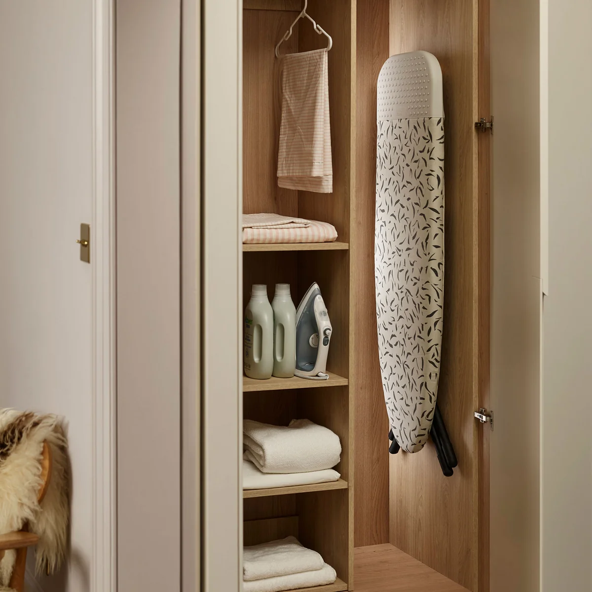 Met de Glide Plus strijkplank van Joseph Joseph wordt vervelend strijken een moeiteloze ervaring. Deze strijkplank maakt niet alleen indruk met zijn compacte en slanke opgevouwen ontwerp, maar ook met zijn praktische functies. Dankzij de snelle en eenvoudige instelling heb je je kleren in een handomdraai op orde. Dankzij de zeven hoogtestanden, variërend van 84 cm (33 inch) tot maximaal 99 cm (39 inch), kun je de strijkplank aanpassen aan jouw behoeften. De comfortabele, eenvoudig te vervangen hoes met DripShield™-technologie beschermt je strijkplank tegen spatwater, terwijl de hittebestendige siliconen strijkijzersteun een veilige plek biedt voor je strijkijzer. Er wordt een apart ophanghaakje meegeleverd zodat je je strijkplank na gebruik kunt ophangen om ruimte te besparen. De eenvoudig te vervangen hoes met trekkoord maakt de Glide Plus strijkplank van Joseph Joseph een onmisbaar hulpje in je huishouden dat comfort en functionaliteit perfect combineert.