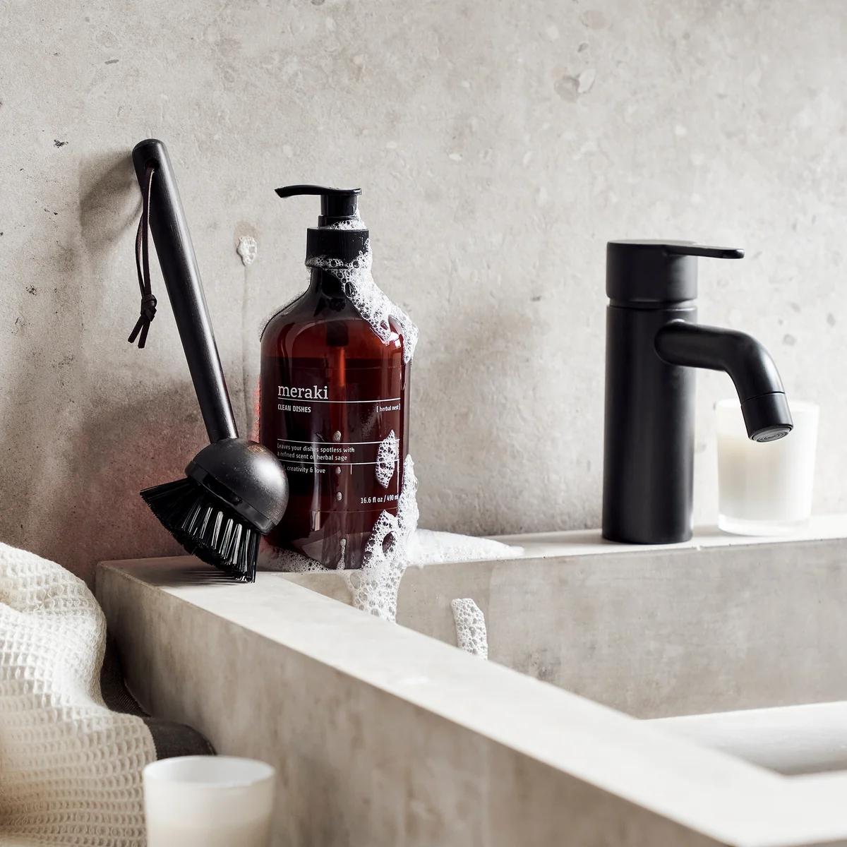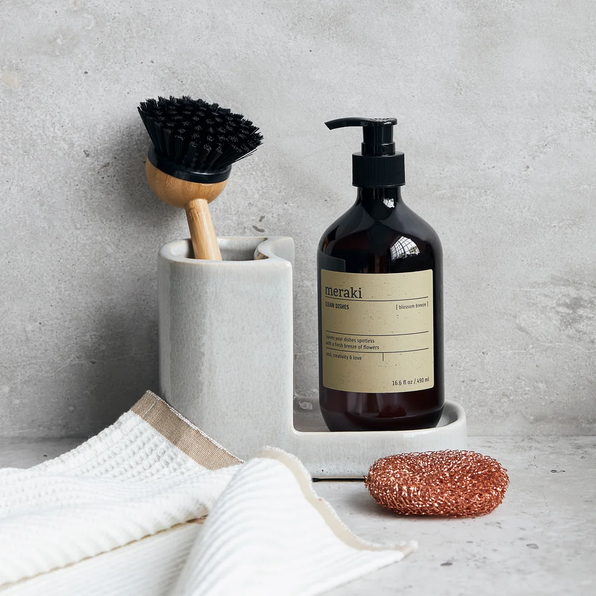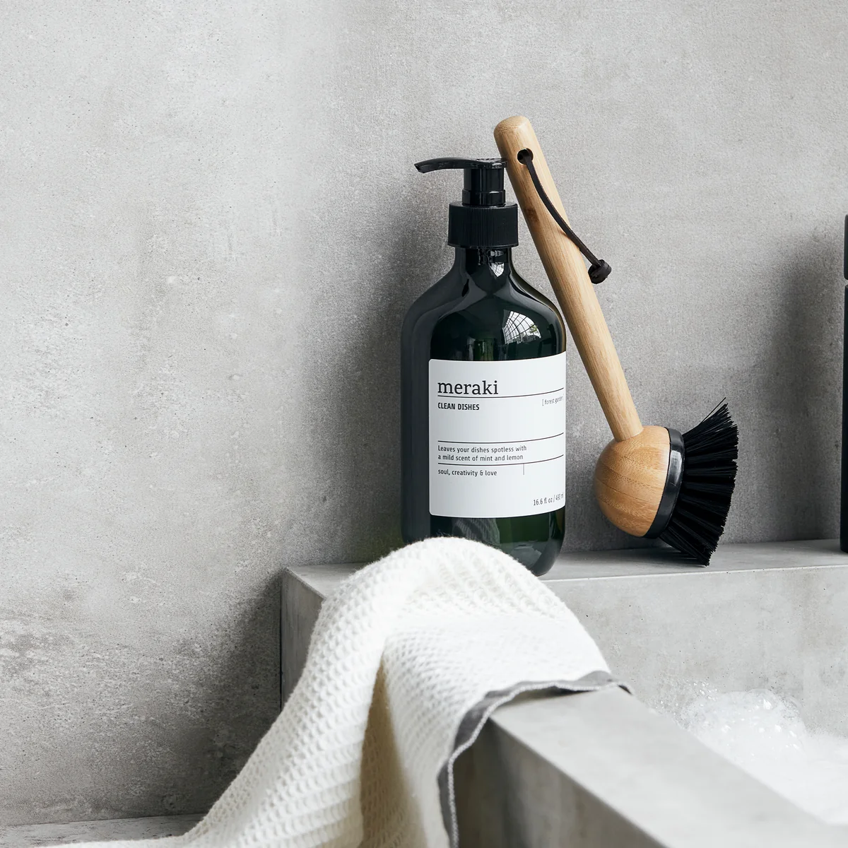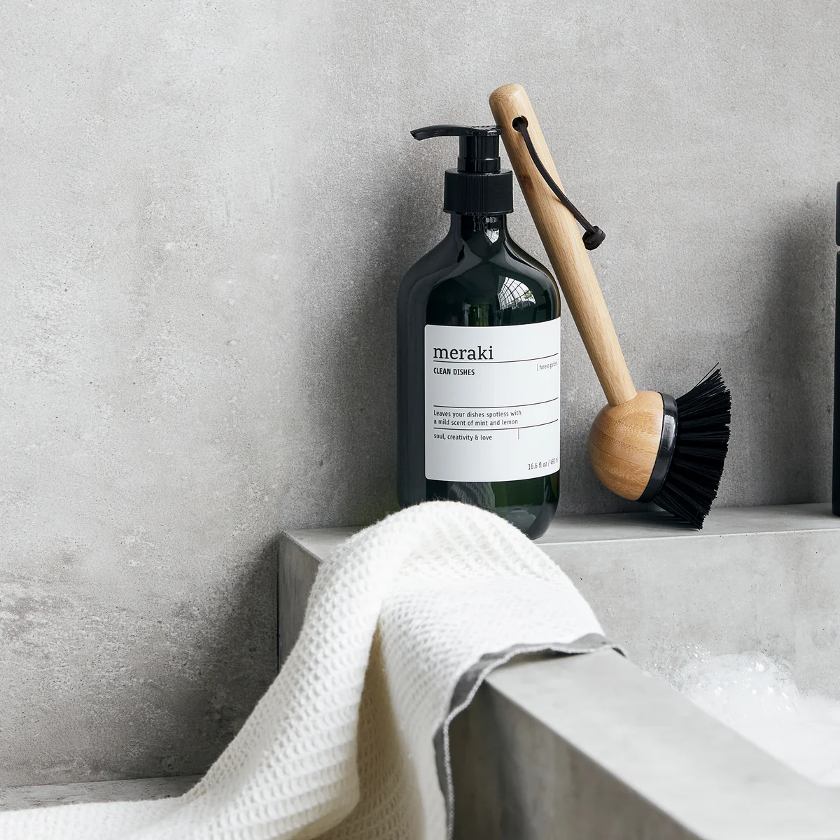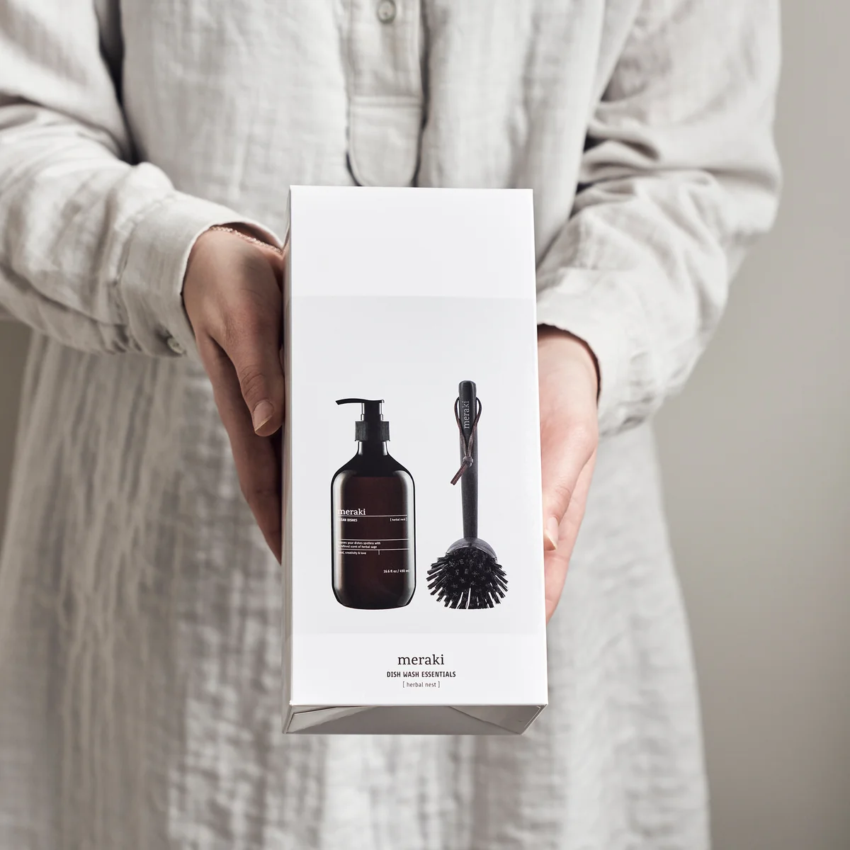 Dish Wash Essential Meraki Cadeautjes geven wordt kinderspel met deze cadeauset van . De set bestaat uit een afwasborstel en afwasmiddel. De borstel heeft een bamboe handvat en een afneembare kop voor eenvoudig schoonmaken. Het afwasmiddel heet Blossom Breeze of Forest Garden, is bekroond met het Nordic Ecolabel en heeft een heerlijke geur van sinaasappel of munt en citroen. Het is ook geschikt voor de dagelijkse reiniging van vloeren, muren en glas.