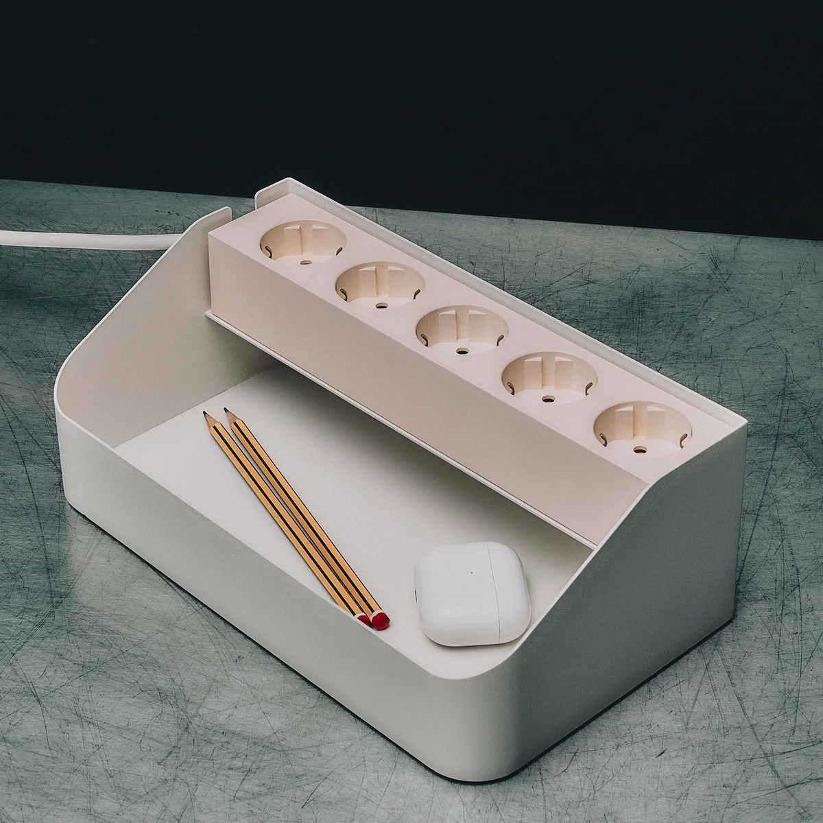 De Power Tray , ontworpen voor Pedestal door ontwerpstudio BIG-GAME, is de slimme aanvulling voor iedereen die zijn stroomvoorziening en werkorganisatie in stijl wil combineren. Deze organizer van robuust staal is speciaal ontwikkeld om te worden gecombineerd met de Power Beam van Pedestal en biedt verschillende aparte vakken voor kabels, voedingen, adapters en ander klein gereedschap dat anders voor chaos zou zorgen.