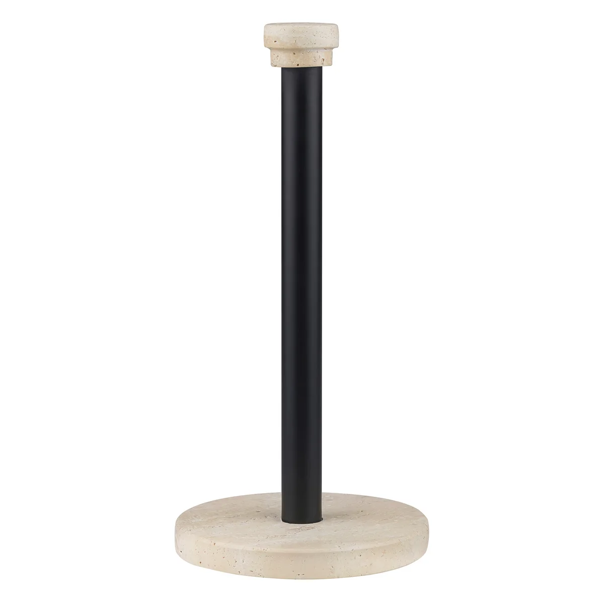 Mette Ditmer De travertin keukenrolhouder van combineert functionaliteit met esthetiek. De combinatie van een basis en een knop van natuurlijk travertijn geeft de houder een warme, organische look. De unieke textuur en karakteristieke patronen van de steen zorgen voor een stijlvol accent in de keuken. De slanke stang van zwart gepoedercoat metaal vormt een harmonieuze aanvulling op de natuurlijke kleurschakeringen van het travertin. Dankzij de stevige constructie en zware voet blijft de houder stevig op zijn plaats en maakt hij indruk met een perfecte mix van praktisch nut en elegantie.