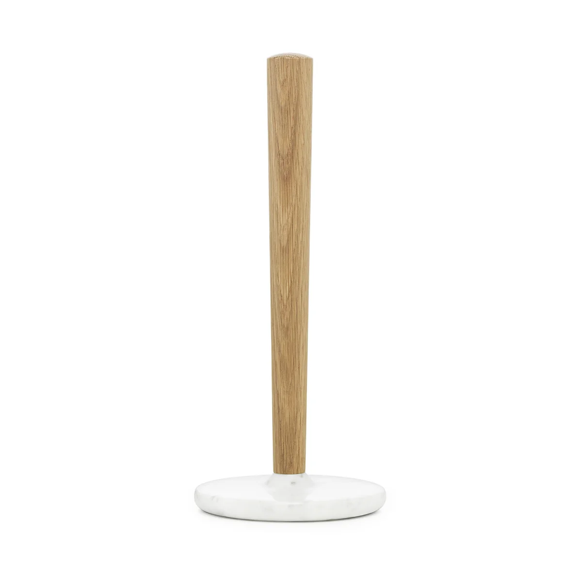De stijlvolle Craft keukenrolhouder van Normann Copenhagen maakt het mogelijk om de papieren handdoeken op een esthetische en tegelijkertijd praktische manier op te bergen. De keukenrolhouder bestaat uit een solide basis van marmer en een slanke, gedraaide stok van eikenhout, wat resulteert in een elegant en intuïtief design.